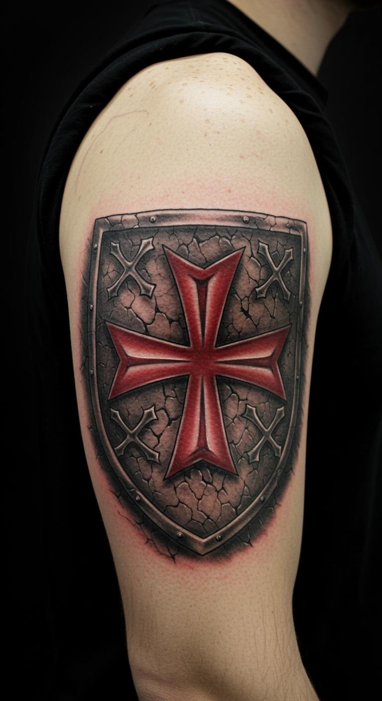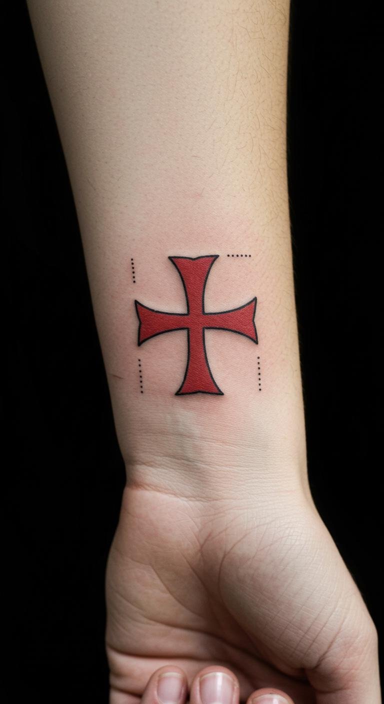Think simple yet bold. A minimalist red cross fits on your wrist for a daily reminder of courage. Start with a basic sketch on paper. Use free online tools to design it yourself. This keeps costs low—aim for $50 to $100 at a local shop. Pick an artist who does fine lines. Wear a temporary version first to test it. Add personal touches, like a small sword detail. It’s easy to hide at work. Go for black ink to keep it timeless. This design inspires quiet strength every day.