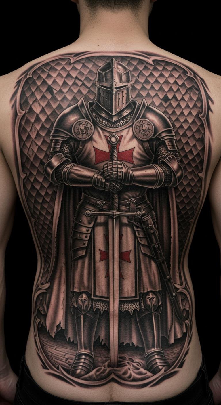 Go big for impact. A full back knight shows full commitment to bravery. Draw inspiration from history books or free apps. Budget around $500 to $1,000 based on size. Find an affordable artist through reviews. Break sessions into two hours each to manage pain. Add elements like a shield for your story. Practice with henna versions at home. This tattoo turns your back into a canvas of resilience. Keep it black and gray for a classic look. Wear it proudly on adventures.