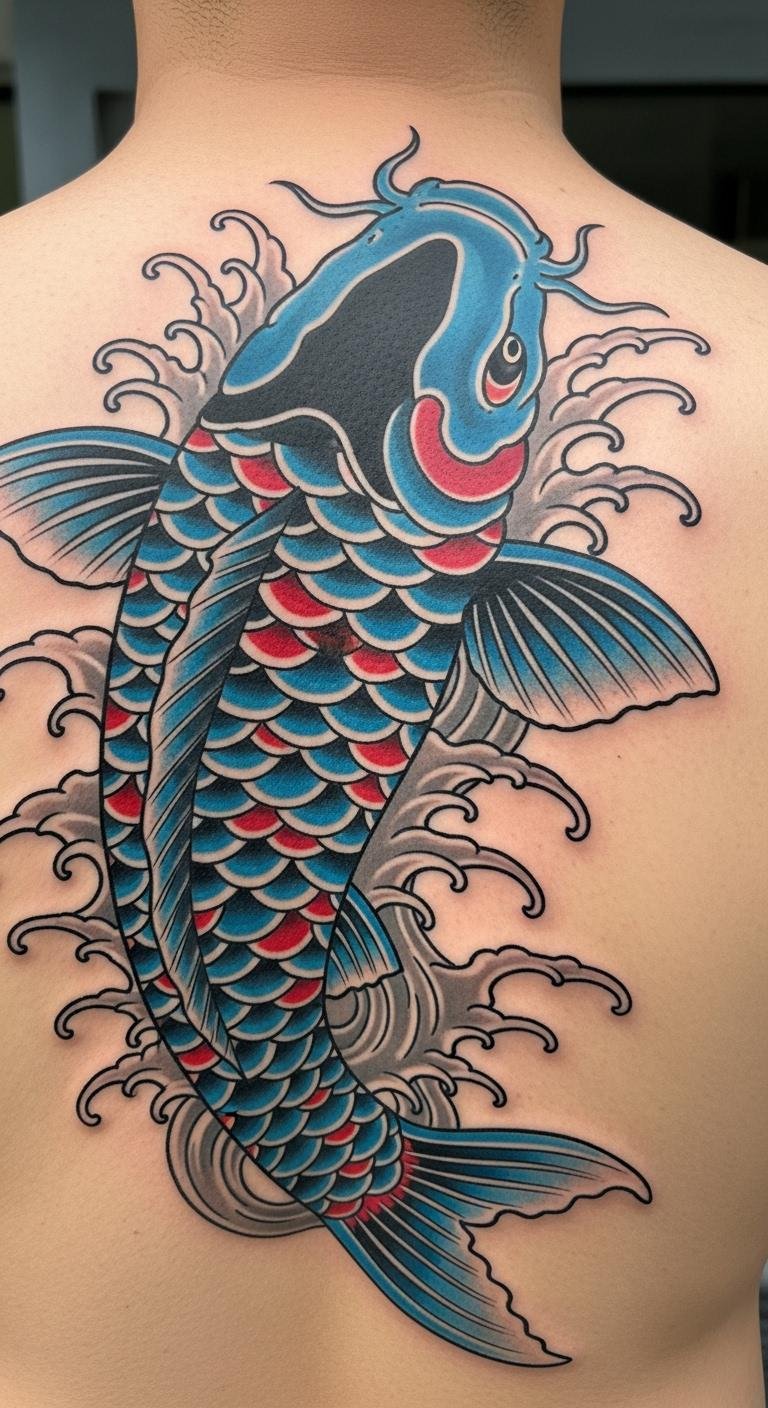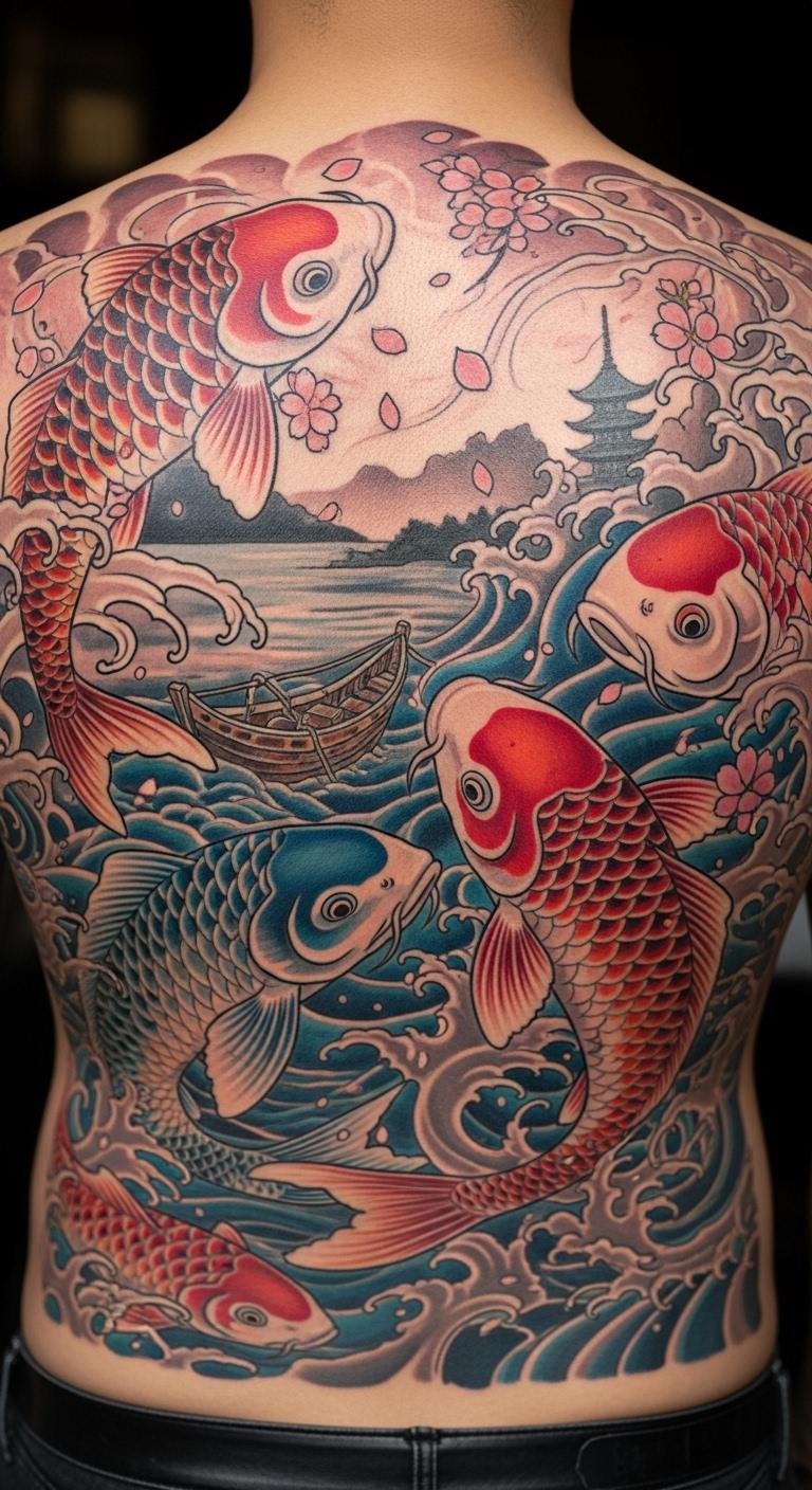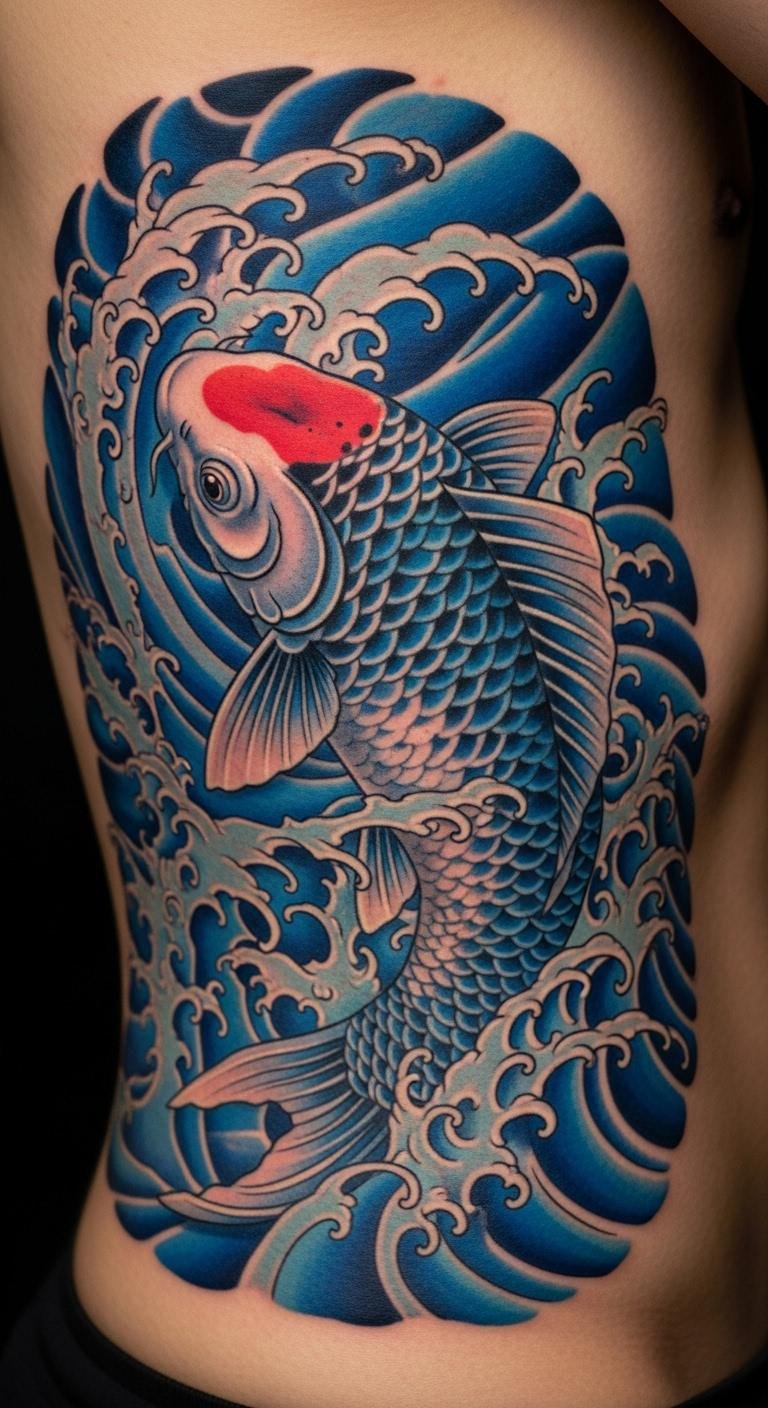 Let the koi wrap your back like a shield. It represents full-circle growth. Trace templates on paper. Supplies are cheap at $3. Search for artists offering packages. Prices: $150–$300. Position it to cover what matters. Customize with elements from your past. Simpler designs cut expenses. This spot boosts posture confidence. Use body paint kits for trials, under $10. Share plans in groups for advice. It strengthens your resolve without extras.