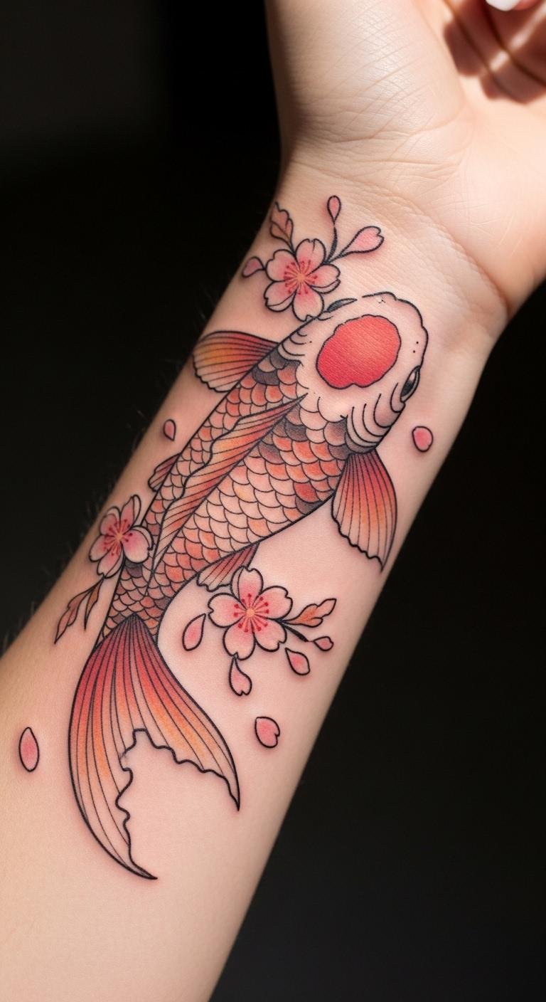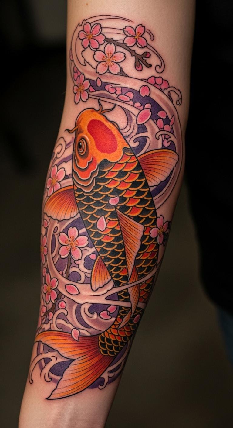 Feminine Floral Koi with Cherry Blossoms