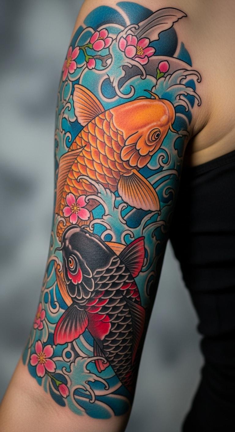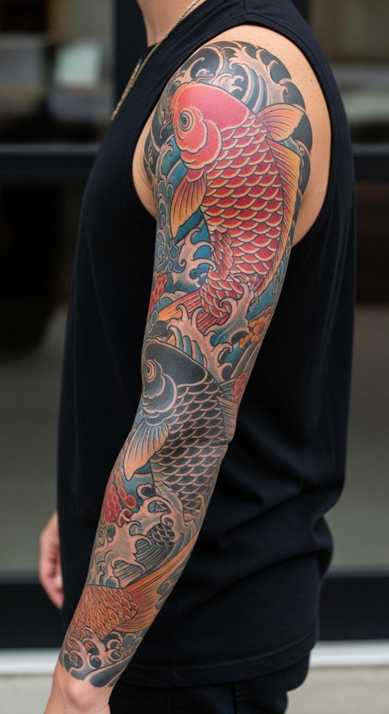 Cover your arm with koi for a bold statement. It displays your journey openly. Start with armband drawings. Use household items. Artists might bundle for $200–$400. Line it with your path elements. Opt for phased sessions to save. This sleeve powers your actions. Practice with string wraps for free. Discuss in forums for ideas. Real ink stories fuel ambition.