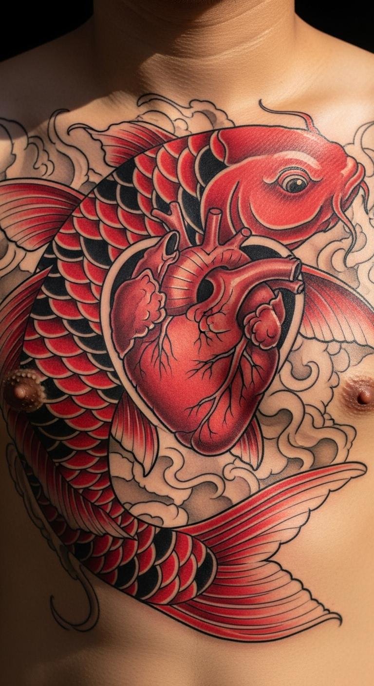 Chest Bold Koi for Heartfelt Power