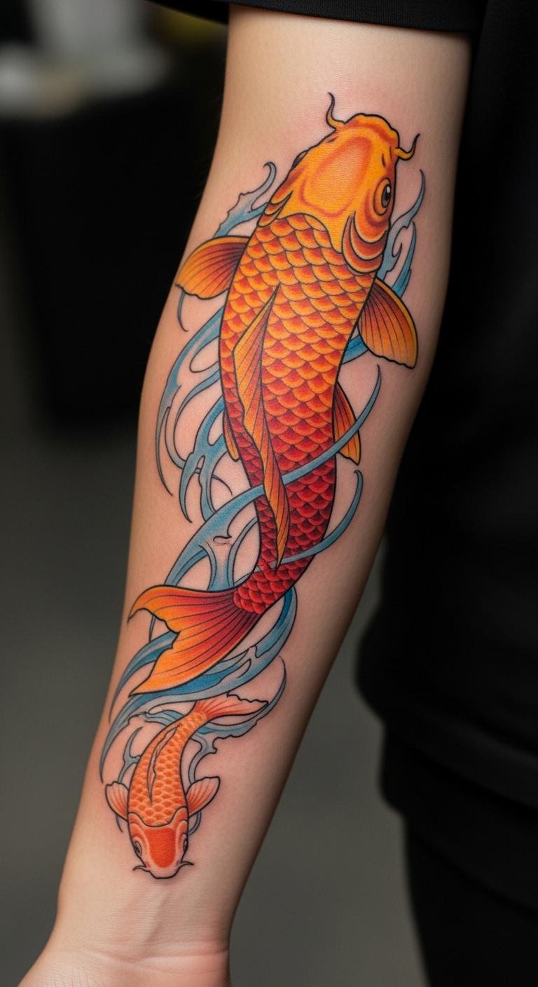 Flowers around a koi add a soft edge. This mix brings grace and inner fire. Draw it at home with colored pencils. Supplies run under $10. Look for artists who do light, detailed work. A session could be $80–$150. Put it on your ankle for a hidden boost. Mix in elements from your life, like a favorite flower. Keep designs simple to save time. This one fits daily outfits. Snap a photo of your sketch to share online for feedback. It builds excitement without big costs. Focus on what makes you feel strong. Real people use this to mark changes. Try a temporary version first with henna kits for $5.