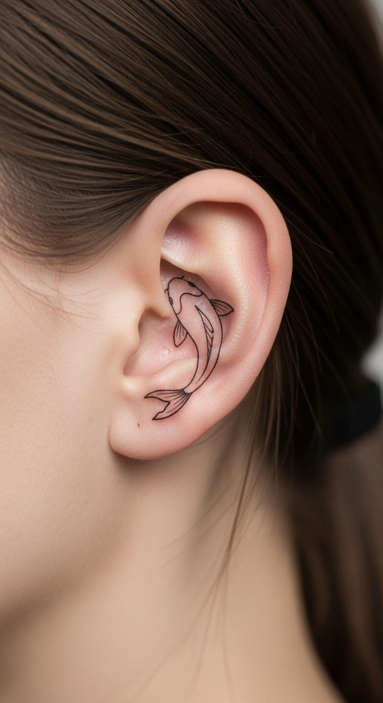 Hide a koi behind your ear for a secret edge. It’s your personal whisper of power. Jot ideas on scrap paper. No extra cost. Seek small tattoo spots. Price: $20–$50. Tuck it away for discretion. Add a unique twist from your story. This keeps it simple and low-key. Use it as a hidden motivator. Free drawing tools online aid planning. Share with trusted people for input.