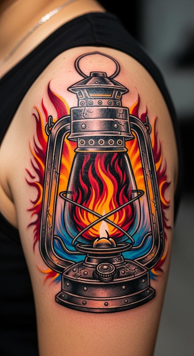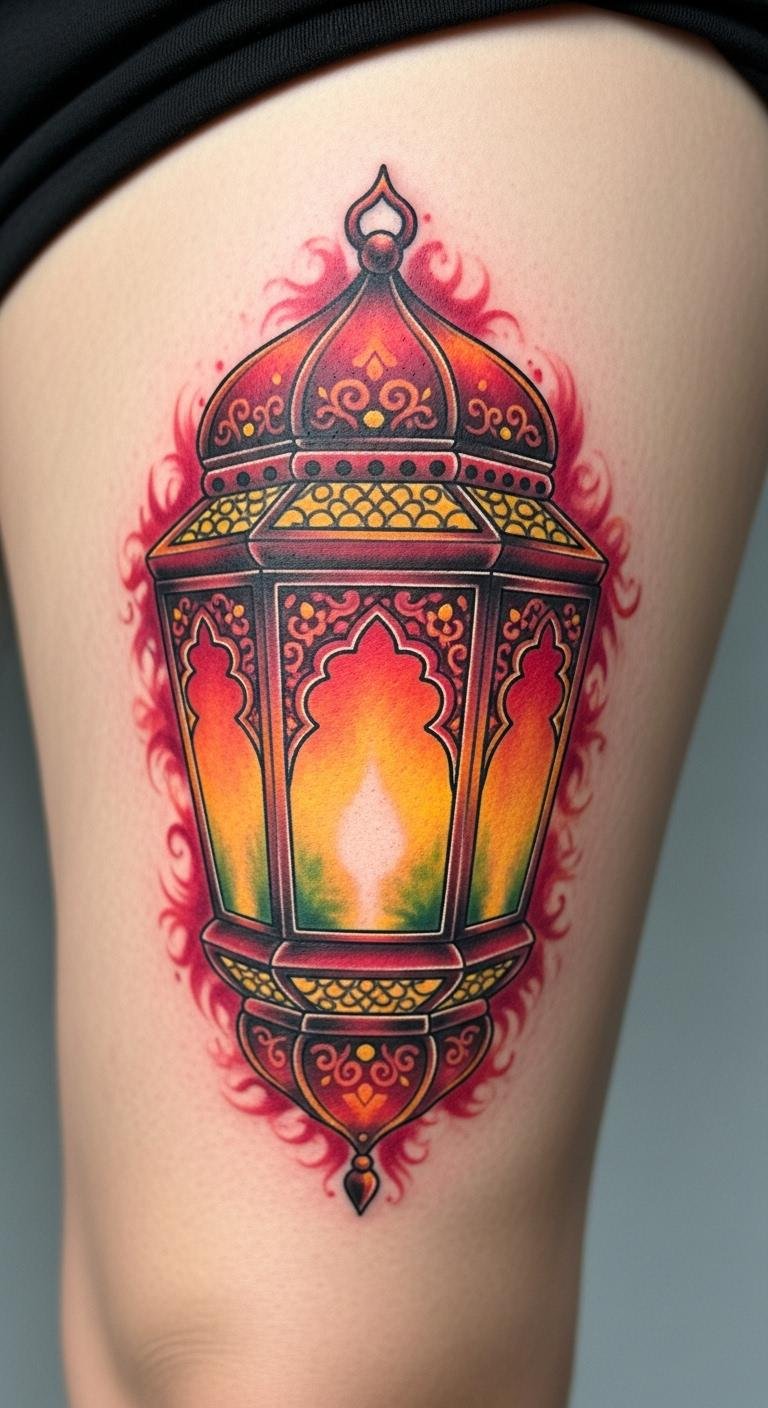 Let colors explode. A colorful lantern brings energy to your skin. Test with colored markers on paper. Put it on your thigh for bold display. Opt for fewer colors to cut costs. Artists can suggest budget palettes. Add flames that mean something to you. Care with home remedies like aloe. It’s lively and fun.