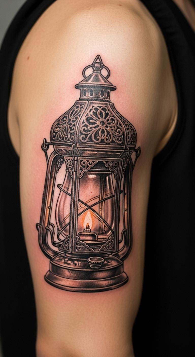 Flex your design here. An upper arm lantern shows off well. Plan with a temporary marker on your skin. This area suits active folks. Opt for medium sizes to save time. Artists have tips for arm tattoos. Personalize with patterns. Use daily creams for health. It’s versatile and practical.