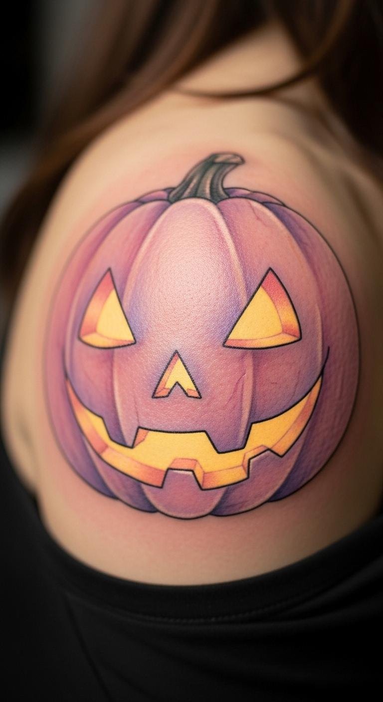 Go cute and spooky with pastel colors. A jack-o’-lantern in soft shades like pink adds a fun twist. Sketch one on paper using colored pencils for a quick mock-up. Try your upper arm for a spot that’s easy to cover or flaunt. Keep costs down by opting for one color instead of a full palette. Look for artists who offer seasonal discounts on thematic designs. Make it yours by including a small pumpkin vine for extra whimsy. Use basic lotions from your medicine cabinet for aftercare to avoid extra spends. This design turns heads during fall without needing much upkeep.