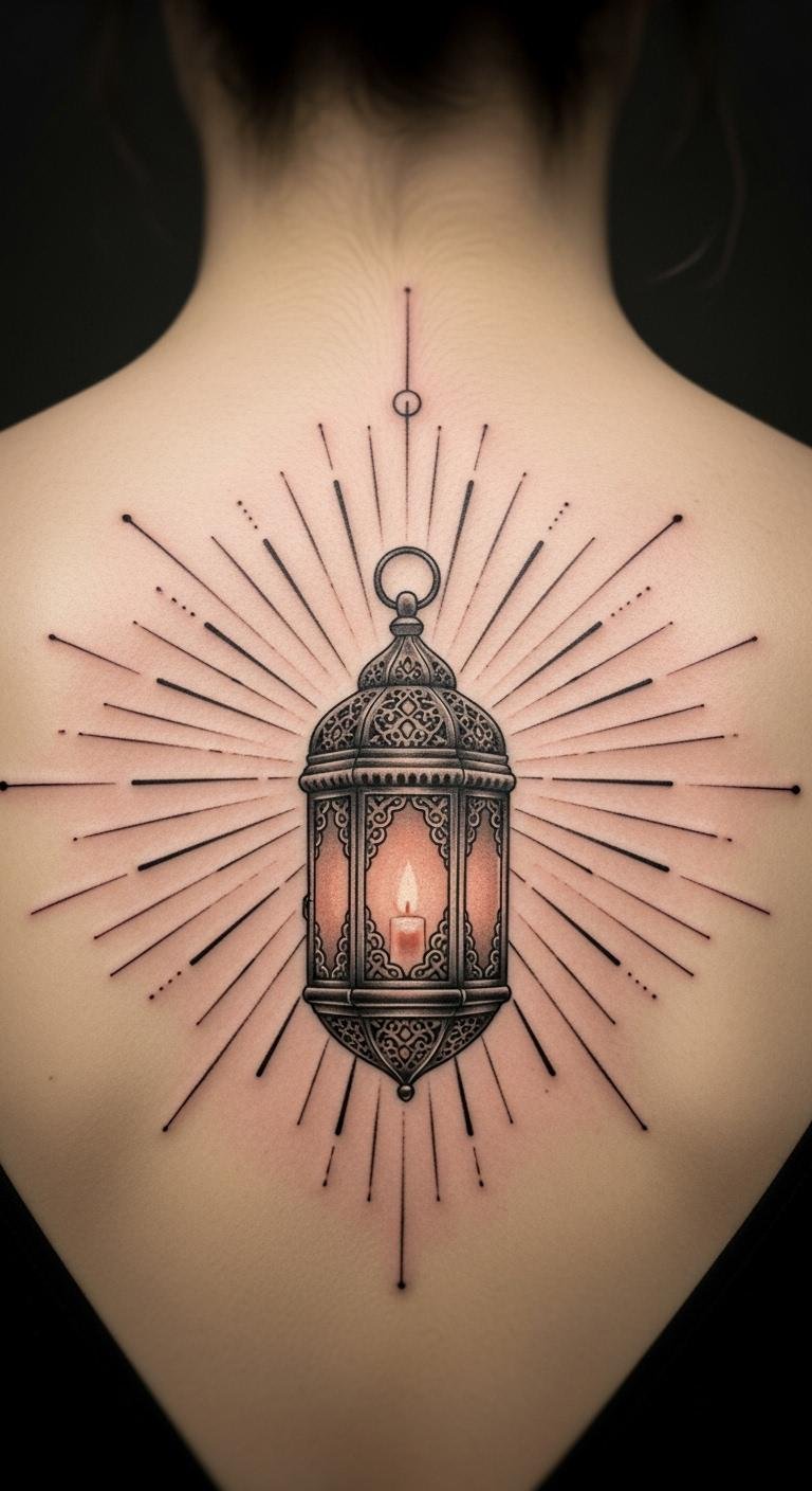 Find inner light with this. A spiritual lantern uses guiding symbols. Sketch rays emanating from it. Back placement enhances the feel. Opt for symbolic simplicity. Talk to artists about meanings. Add personal icons. Maintain with ease. It’s uplifting and clear.
