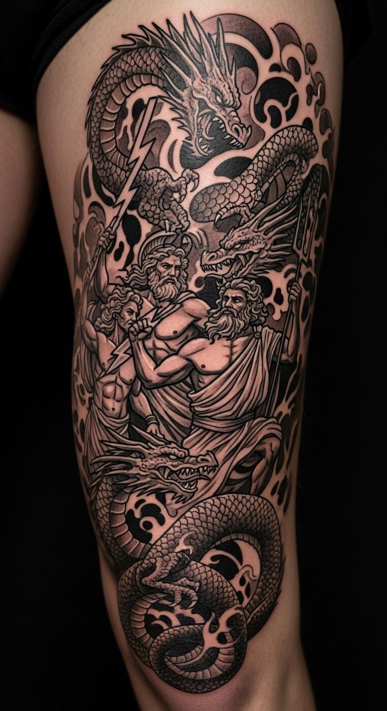 Mythological tattoos bring ancient tales to life on your leg. Figures like gods or dragons add power and mystery. Begin by noting symbols that resonate with you, such as a dragon for strength. Find an artist online for $50 sessions to discuss options. At home, use free apps to overlay designs on photos of your leg. Keep it real by starting small with a single motif. This method saves money and time. Try drawing on paper to see how elements connect. Real tattoos flow better when you plan ahead.