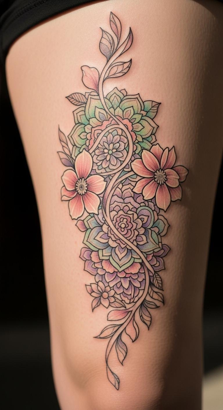 Floral designs with mandalas create elegant leg sleeves, often favored for their grace. Choose flowers that hold meaning, like roses for memories. Search local spots for artists under $150. Draw patterns on paper to experiment. Use affordable stickers as templates on your skin. Add curves to fit your leg shape. This approach is easy and fun. Try it with free online tools to preview. Real designs shine when they adapt to you.