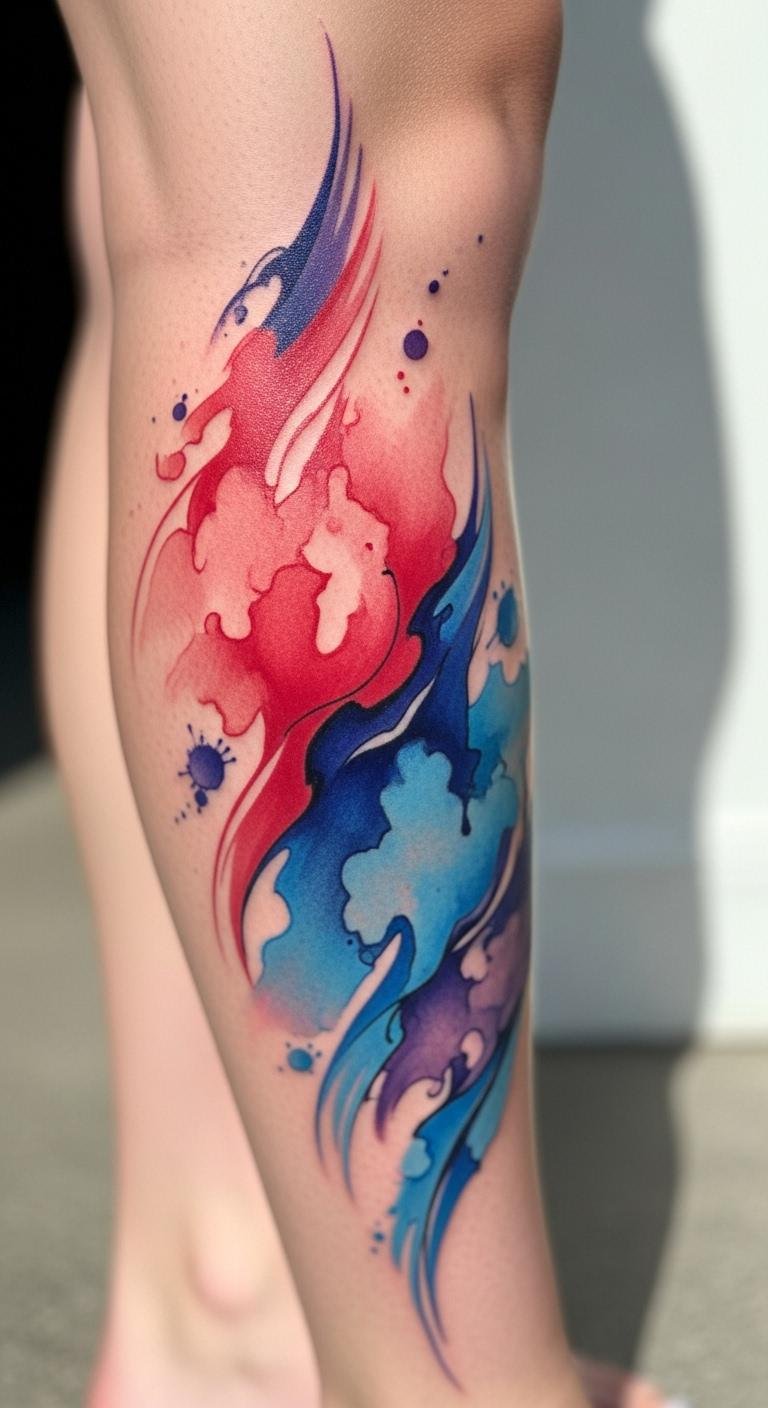 Watercolor tattoos bring color and art to your leg in a fluid way. Pick hues that match your wardrobe. Find deals online for sessions starting at $80. Blend colors on paper first. Use water-based paints for home trials. Add layers for depth. This keeps things affordable. Practice with kid’s art supplies. Designs flow naturally from simple steps.