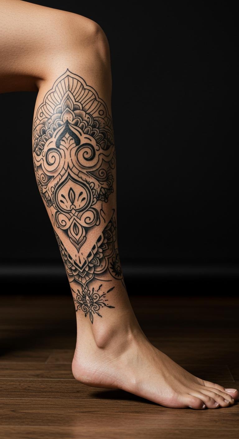 Instagram-worthy leg tattoos catch the eye. Think cool patterns on your calf that pop. They make great photos for your feed. Snap ideas from free accounts. Pose with natural settings at home. Share with friends to get feedback. These add flair to your day.