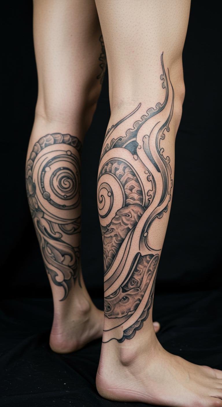 Fine-line calf tattoos bring subtle elegance to your leg. They use super thin lines for a delicate effect. Picture a vine wrapping around your calf or a small wave design. This style fits under clothes for work days. Draw inspiration from online galleries at no cost. Grab a pen and trace ideas on your skin temporarily. Look for artists who charge by the hour to keep costs low. A session might run under $100 with planning. Wear loose pants during healing to avoid irritation. These tattoos highlight your natural shape. Try them if you want something that ages well.