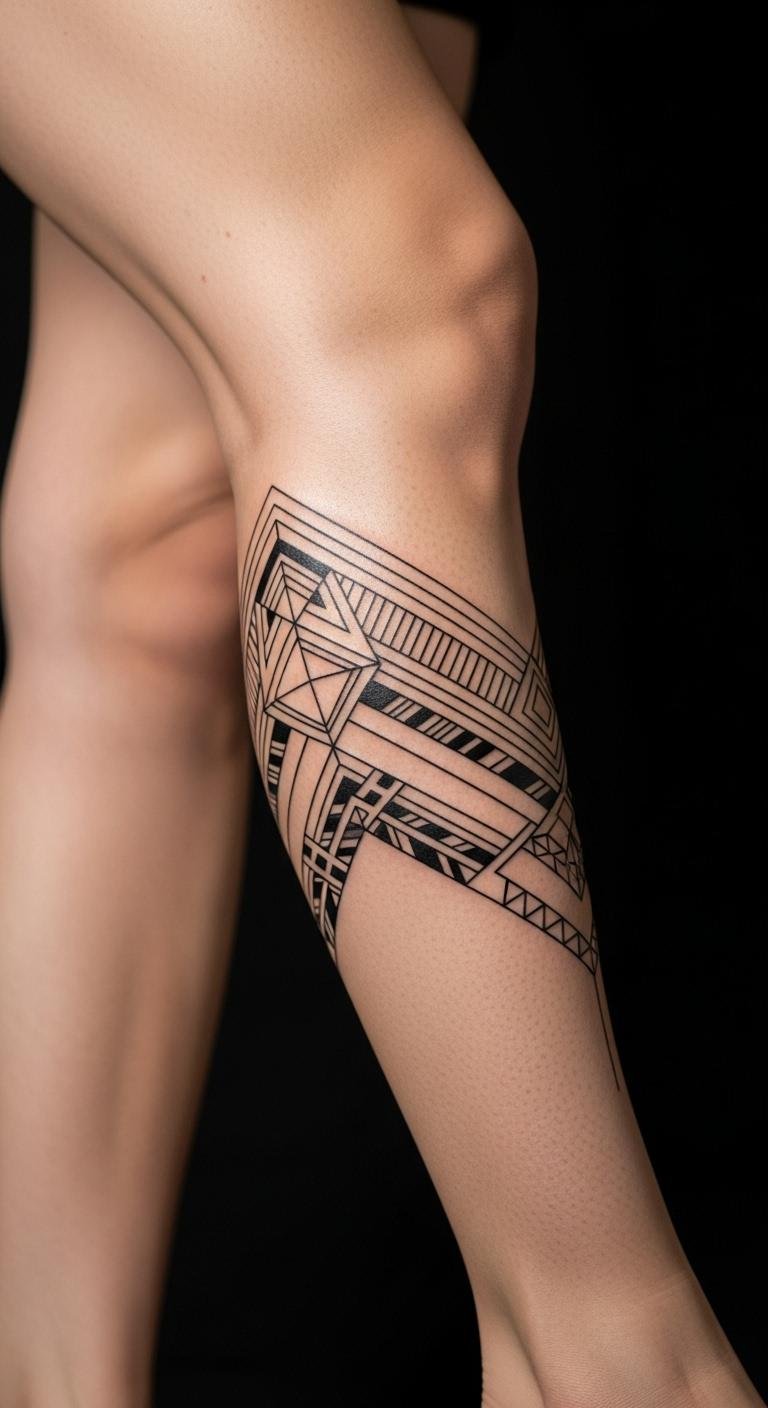 Geometric tattoos bring clean lines to your leg. Triangles or circles create a modern feel. Place them on the ankle for subtlety. Draw shapes on your skin with a marker first. This DIY step lets you test looks without ink. Apps like free drawing tools make it easy. Find an artist online for $50 to $150. Go for simple designs to save money. These patterns mix well with other styles. Wear them with shorts to show off. Adjust sizes to fit your leg curve. It’s a quick way to add edge to your routine.