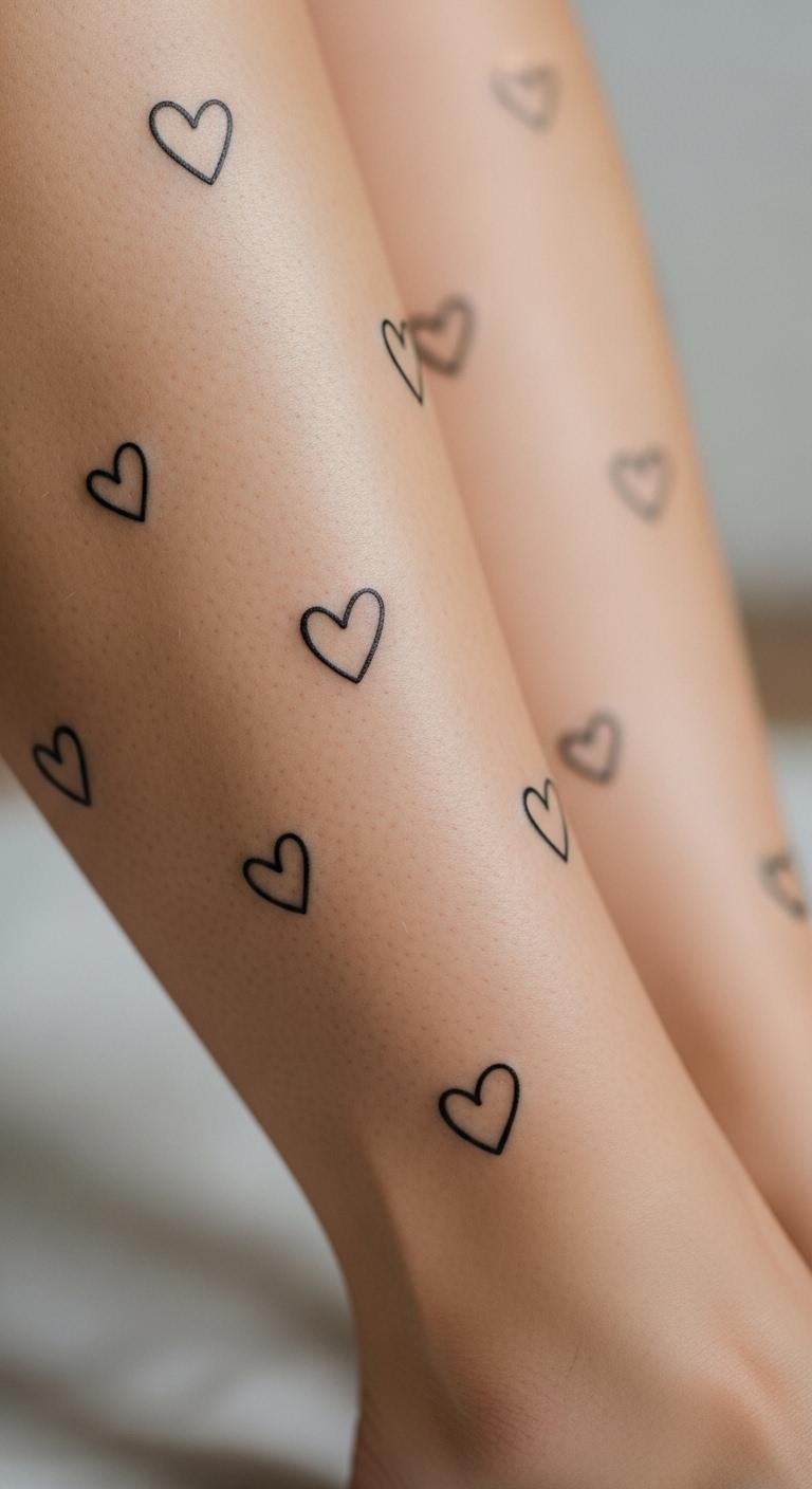 Heart tattoos keep things sweet. Outlines on the leg are subtle. Hide or show as you like. Draw with markers first. This home step is easy. Find deals for under $40. Use single lines. These symbolize love. Add to collections over time. It’s affordable and endearing.