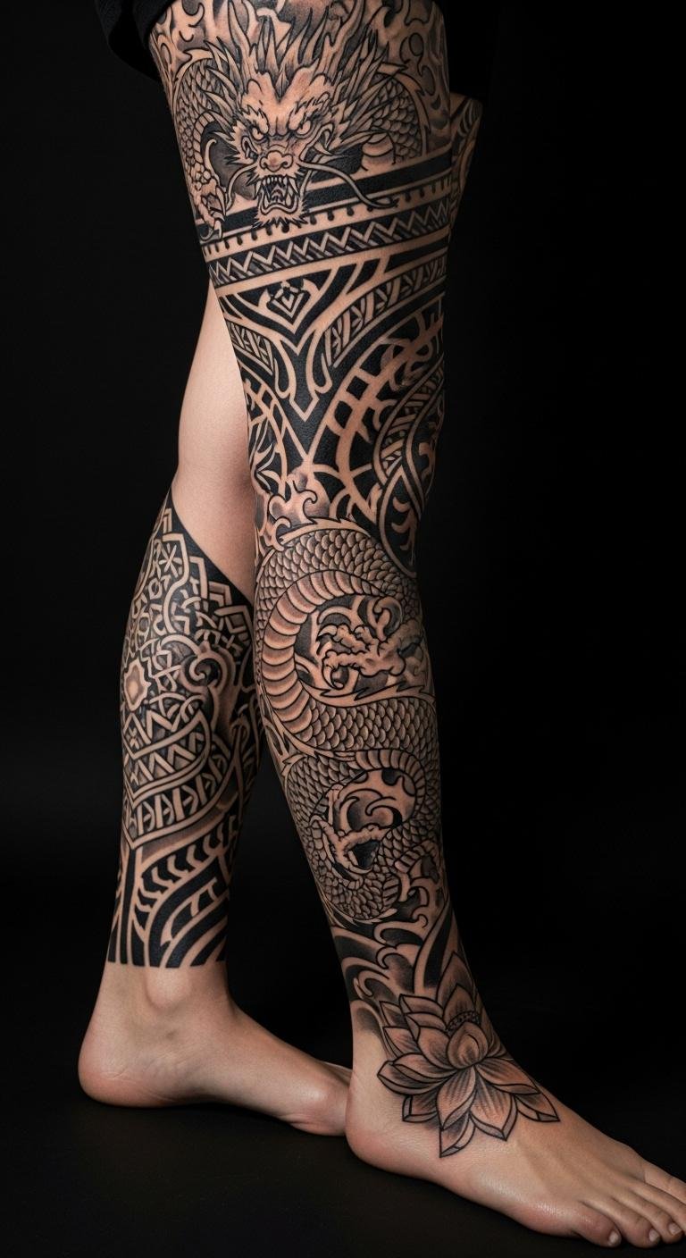 Bold designs cover your leg fully. Large motifs demand attention. Plan for the whole area. Use body paint to test. Buy kits cheaply. Save for phased sessions. Start small to budget. These transform your look. Show in outfits. It’s empowering and fun.