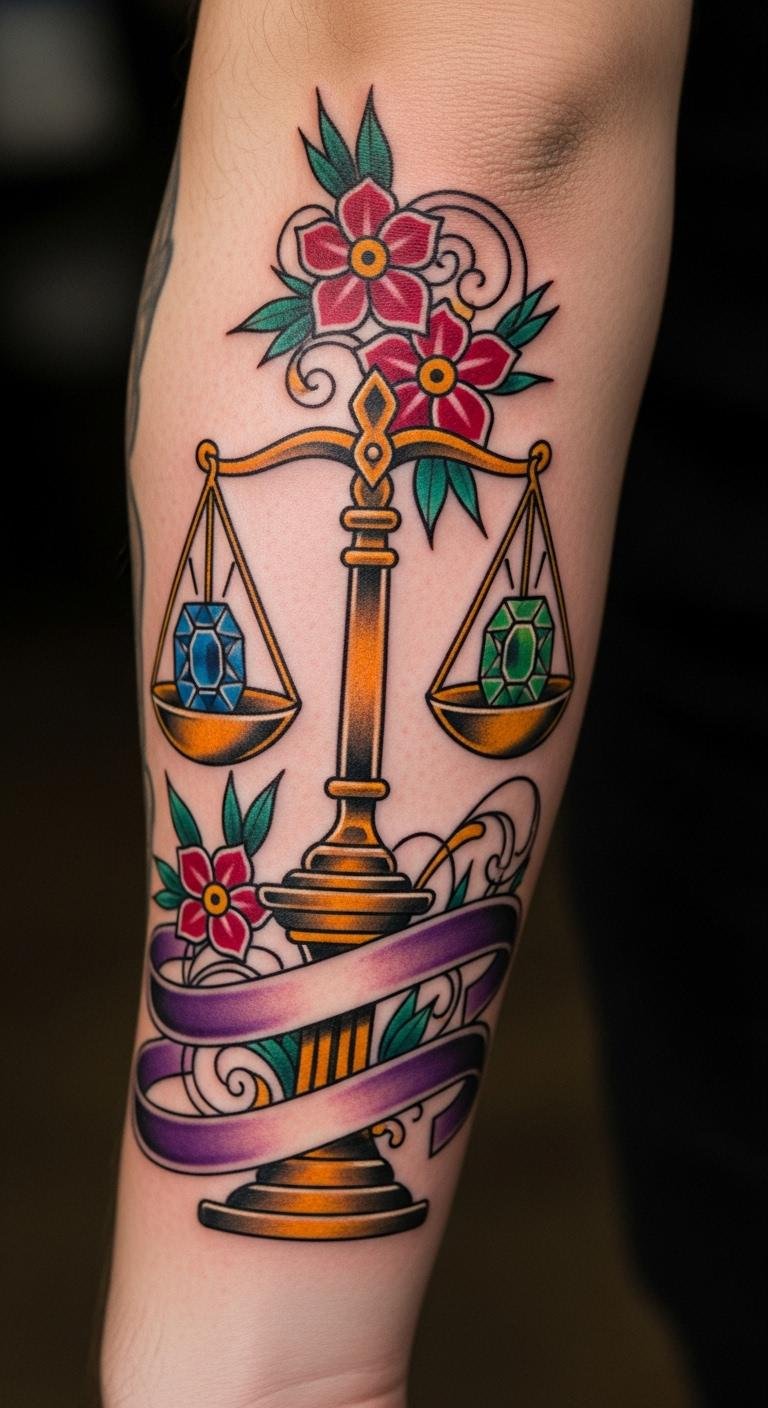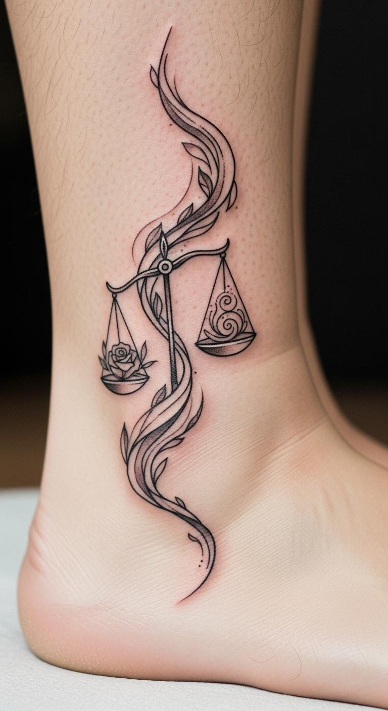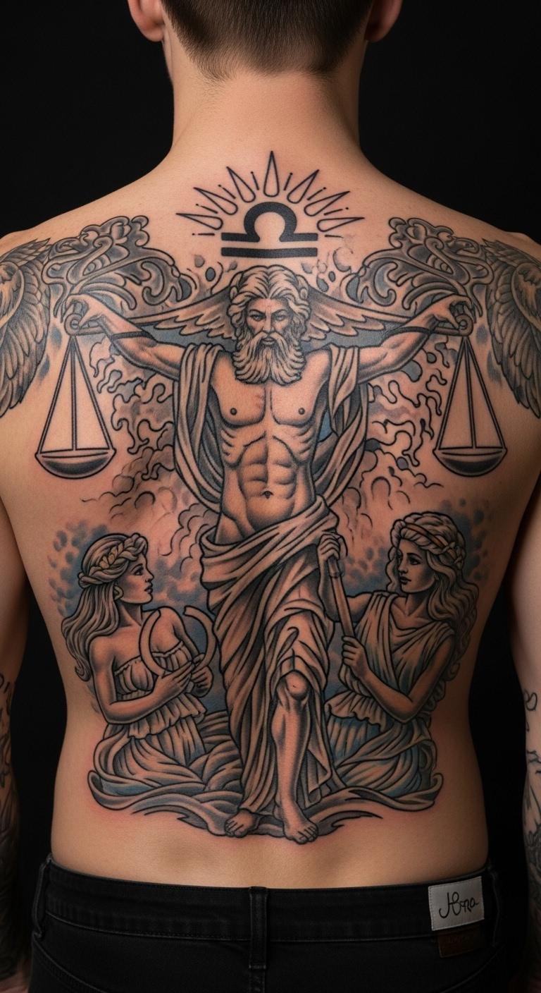 Add butterflies to represent Libra’s social side. Try your back for space. Look for deals on first tattoos. Sketch butterflies on paper. This design enhances the social theme. Stick to black for affordability. Practice with temporary designs. Make it proportional. You’ll love the added symbolism. Customize by varying wing shapes.