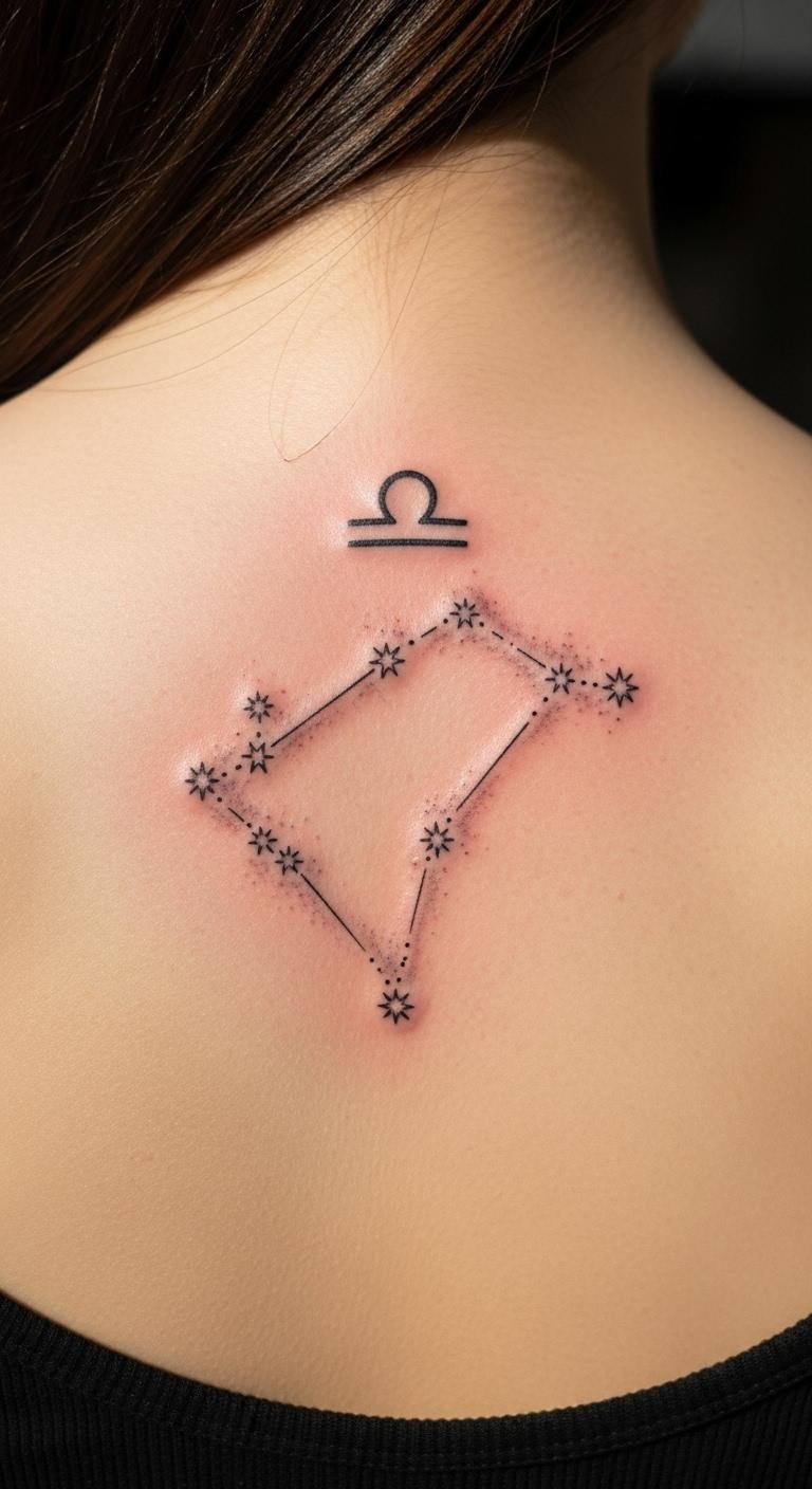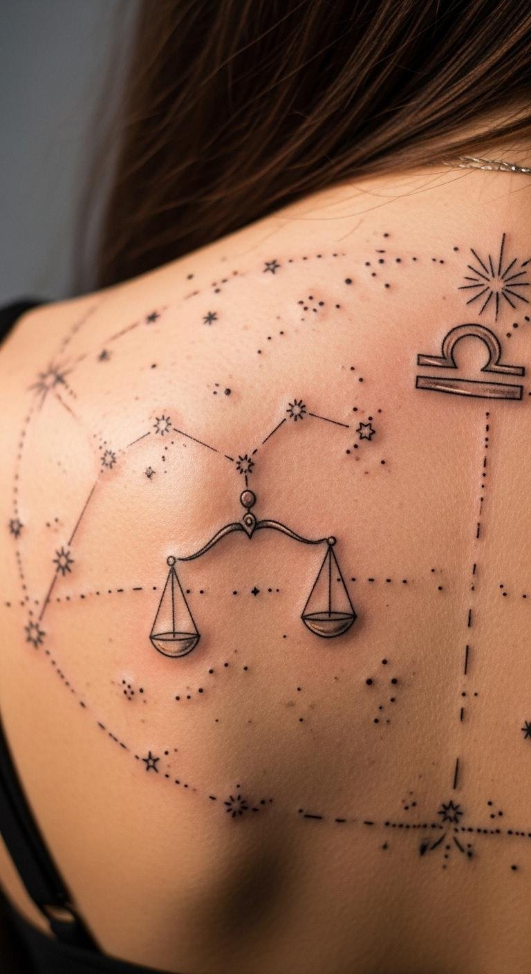Constellation tattoos bring the stars to your body in a cool way. Map out the Libra stars using free astronomy apps. Sketch them on yourself with a temporary marker first. Look for group tattoo events with discounted rates. Combine with a moon for depth. Pick a spot like your shoulder for visibility. Practice by drawing on paper—it’s straightforward and fun. This design makes you feel connected to the cosmos without breaking the bank.