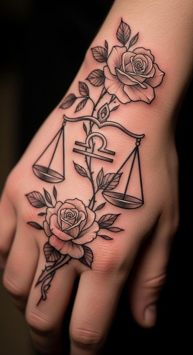 Flowers add romance to Libra designs, like roses wrapping around scales. Start by picking a flower from your garden for inspiration. Draw simple combos on paper using colored pencils. Search for affordable artists who specialize in nature motifs. Keep it small to save money. Place it on your arm for easy viewing. Try a DIY version with henna kits from the store. This blends beauty and balance in one go.
