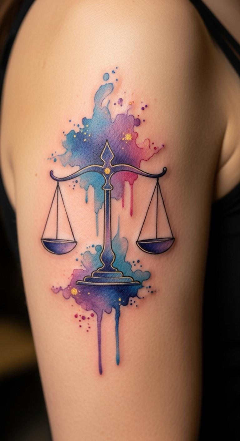 Watercolor adds color to Libra tattoos without overwhelming. Start with water-based paints for home trials. Find artists offering watercolor specials online. Keep designs small to cut costs. Mix in blues for air vibes. Choose your side for comfort. Practice on paper first. This style pops with personality on a budget.