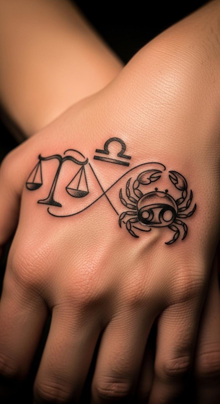 Pairing Libra with Cancer works for friends or couples. Draw both signs together on paper. Use free pairing ideas from apps. Look for duo deals at studios. Add a heart link. Place on matching spots. Try temporary versions first. It’s a shared experience that’s affordable.