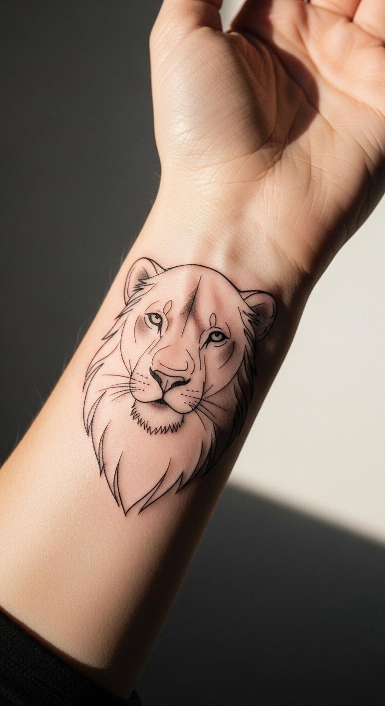 A fine line lioness keeps things simple and elegant. Think of a sleek outline on your arm that says strength without overwhelming your skin. Start with a basic sketch on paper using a black pen. This helps you visualize the design before committing. For a budget option, use free online templates from art sites and tweak them yourself. Add personal touches like a small flower next to the eye. Keep aftercare straightforward: wash gently with soap and pat dry. Bold the key: fine line design. Experiment at home by drawing on your skin with washable markers. This low-cost method lets you test placements without pain. Go for sessions at local studios offering deals under $100. Remember, less ink means easier healing. Try moisturizing with affordable lotion from the drugstore. These steps make getting inked approachable and fun.