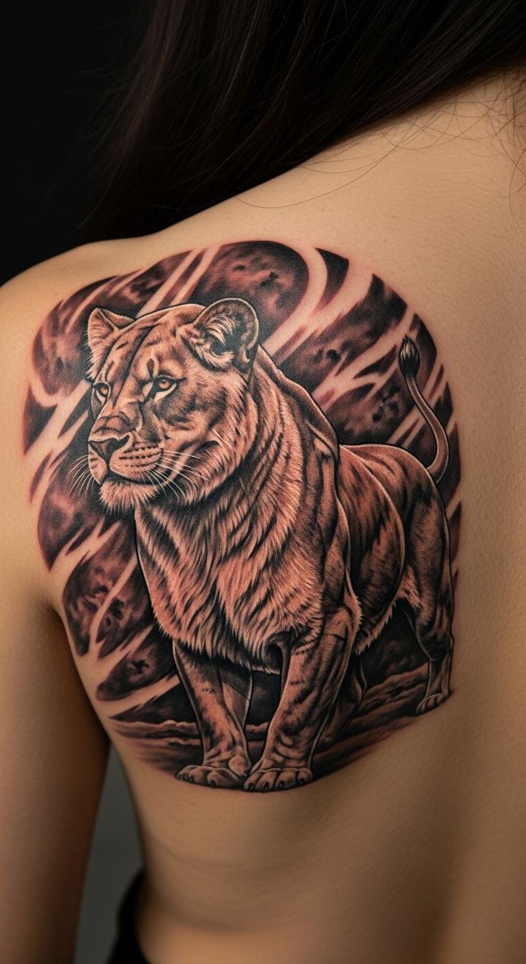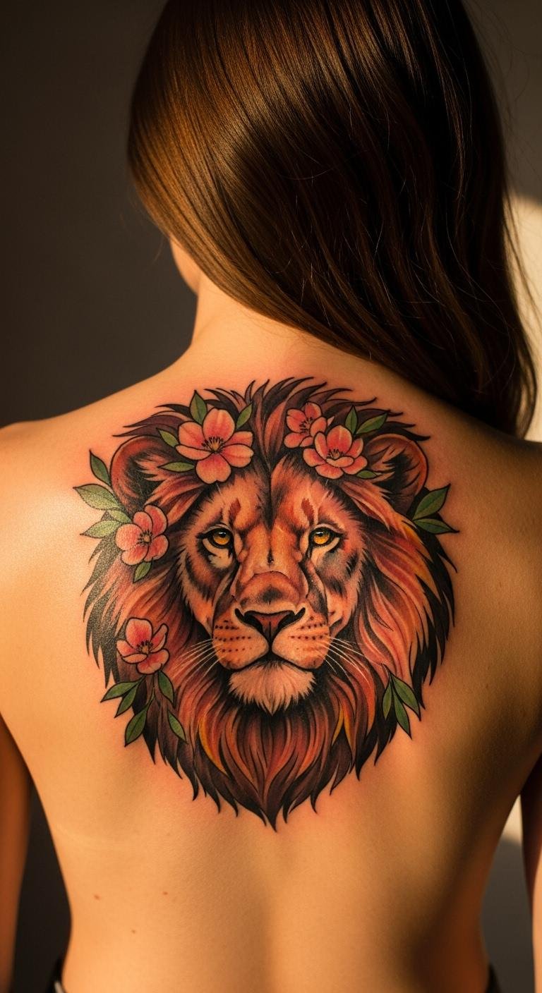 Floral lioness fusion brings nature to life. Envision flowers wrapping the mane on your back. Draw petals with crayons for a fun start. Use public domain images to build your own. Position it for balance and flow. Bold the key: fusion design. Compare prices at different studios. Aftercare means staying hydrated and protected. Test with stickers on your skin first.