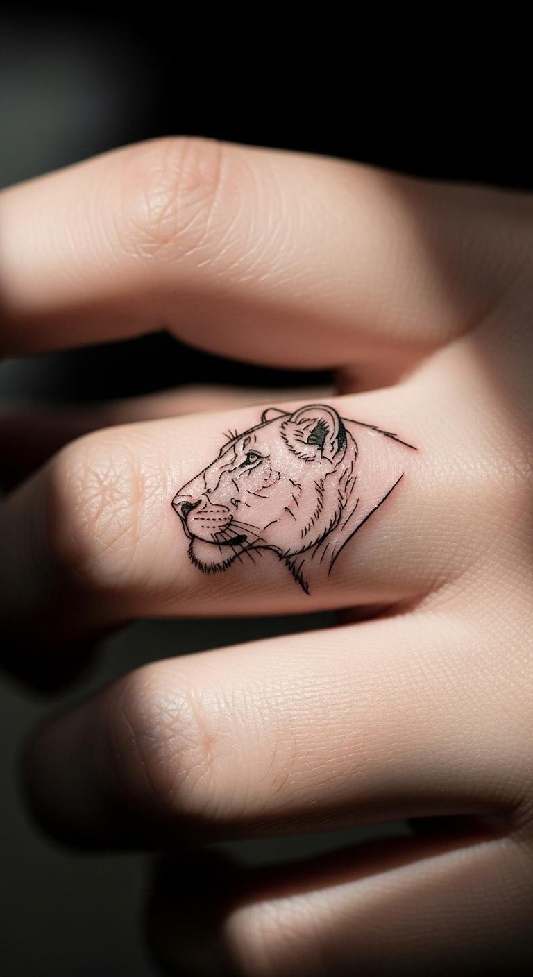Fine line lioness profile fits tiny spots. Try your finger for subtlety. Bold the key: profile design. Use nail art for tests.