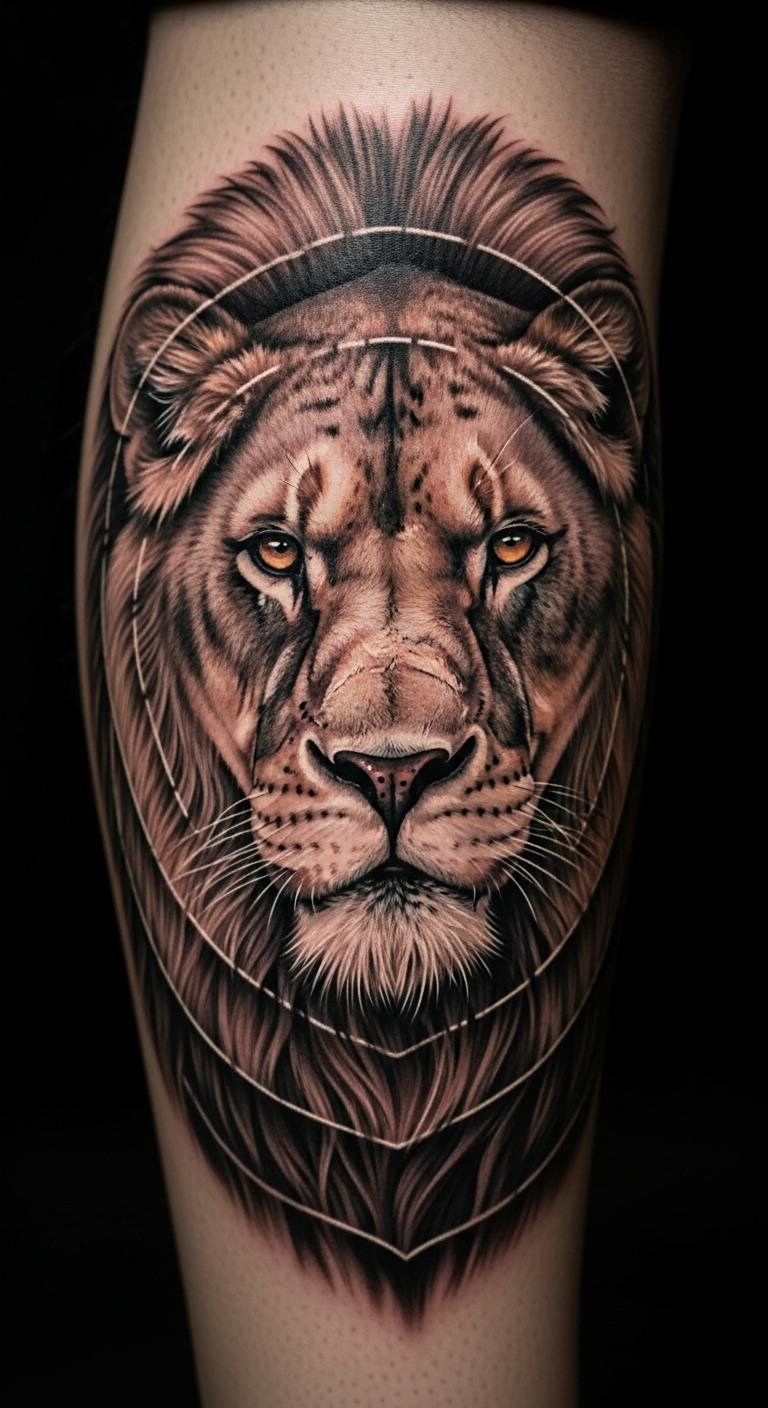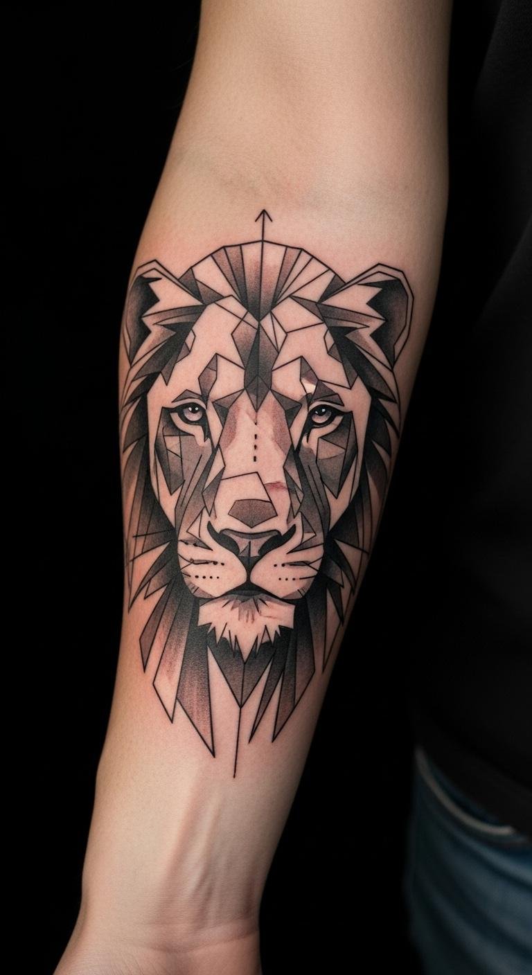 Geometric lioness turns the wild into modern art. See it on your forearm with sharp angles that pop. Use graph paper and a pencil to plot shapes at home. Grab free geometric tools online to customize. Place it for easy daily view. Bold the key: shape design. Look for sales at tattoo shops to keep costs low. Heal by avoiding tight clothes, using items you already own. Practice by cutting shapes from paper and arranging on your arm. This hands-on approach makes decisions simple. Add colors with markers for a trial run.