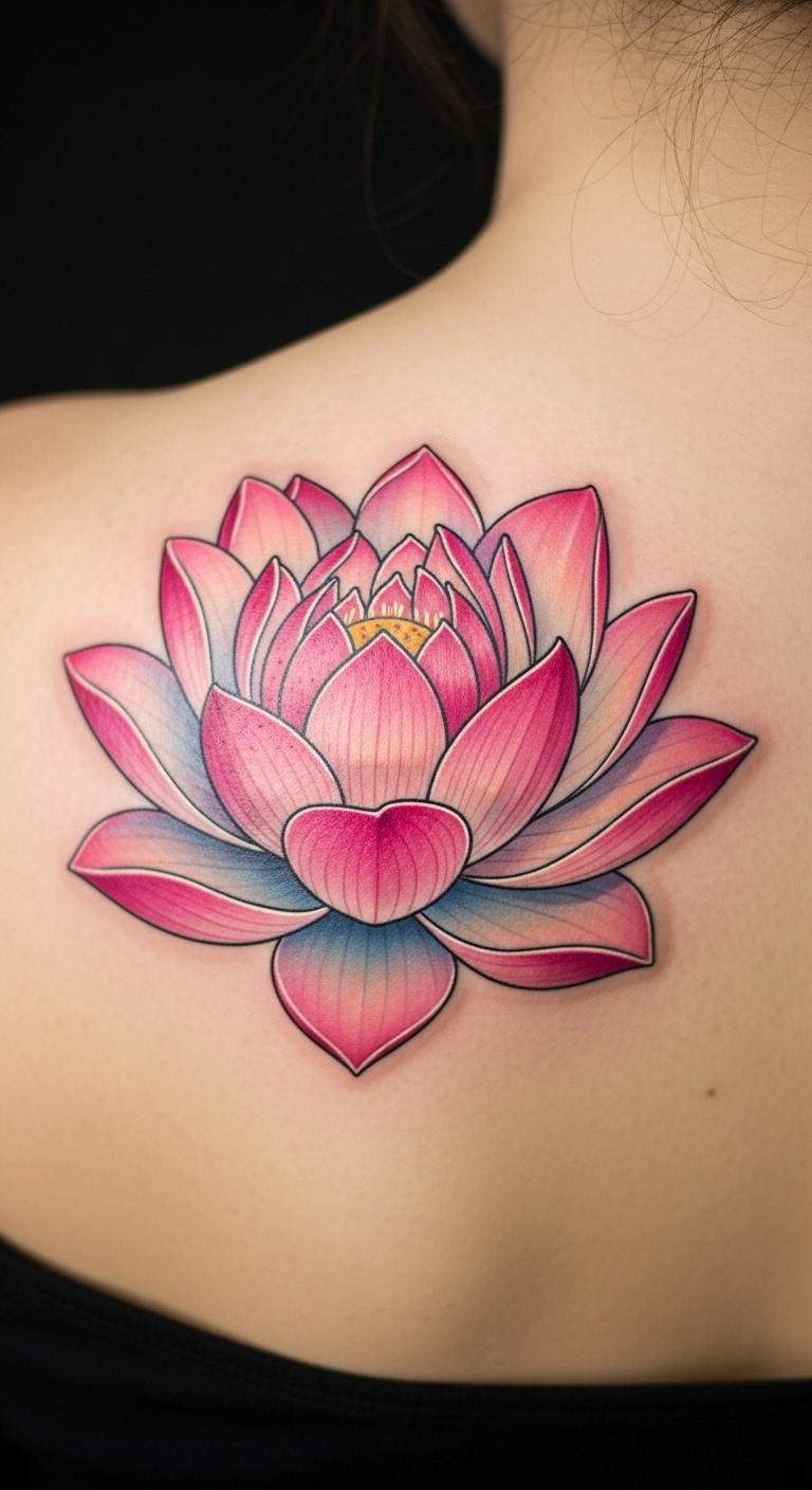 Back lotus tattoos represent hidden strength. They stay private yet powerful. Draw a rough version on paper to visualize. Go for medium size to balance cost. Bold the power: rising above adversity in secrecy. Add personal touches like stars for free. This placement offers quiet inspiration without much expense.