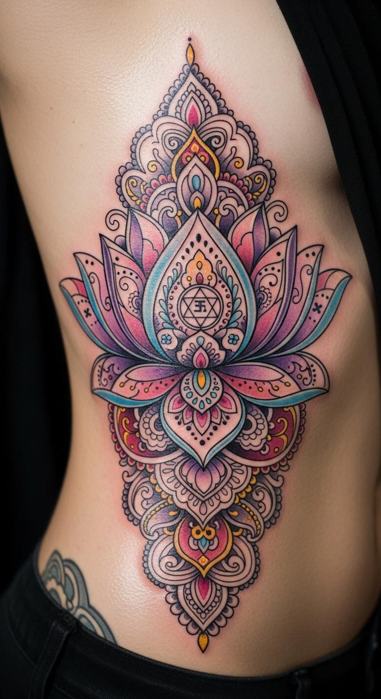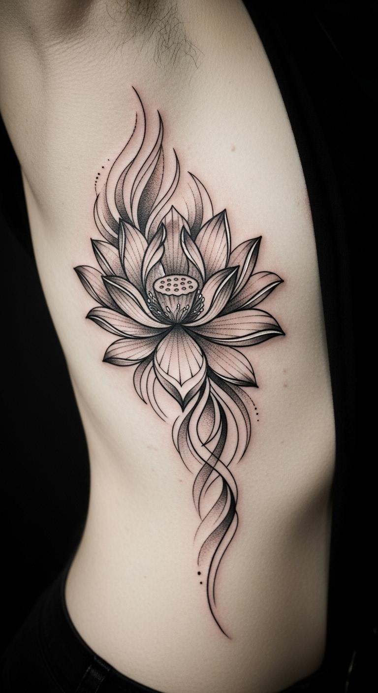 Hindu lotus tattoos celebrate divine beauty. They incorporate cultural elements. Start with simple drawings from resources. Place it on your side for flow. Go basic to keep costs low. Bold the beauty: prosperity and growth honored. Practice at home for free. This design respects roots economically.