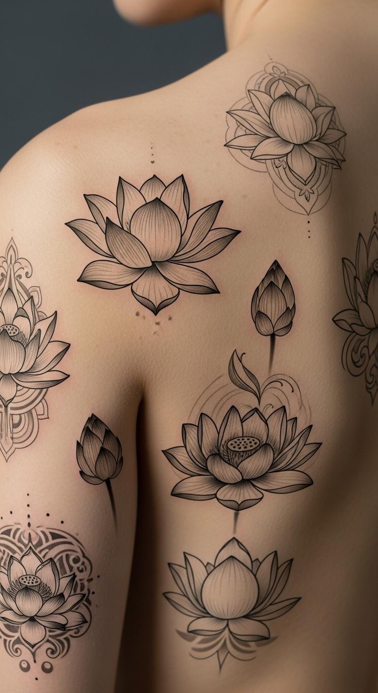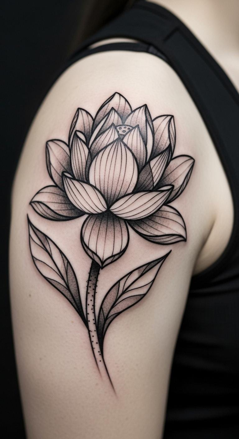 Shoulder lotus tattoos show strength in placement. They support your path. Outline on cloth first. Go for bold lines. Bold the strength: resilience in ink. Use budget sketches. This spot empowers simply.