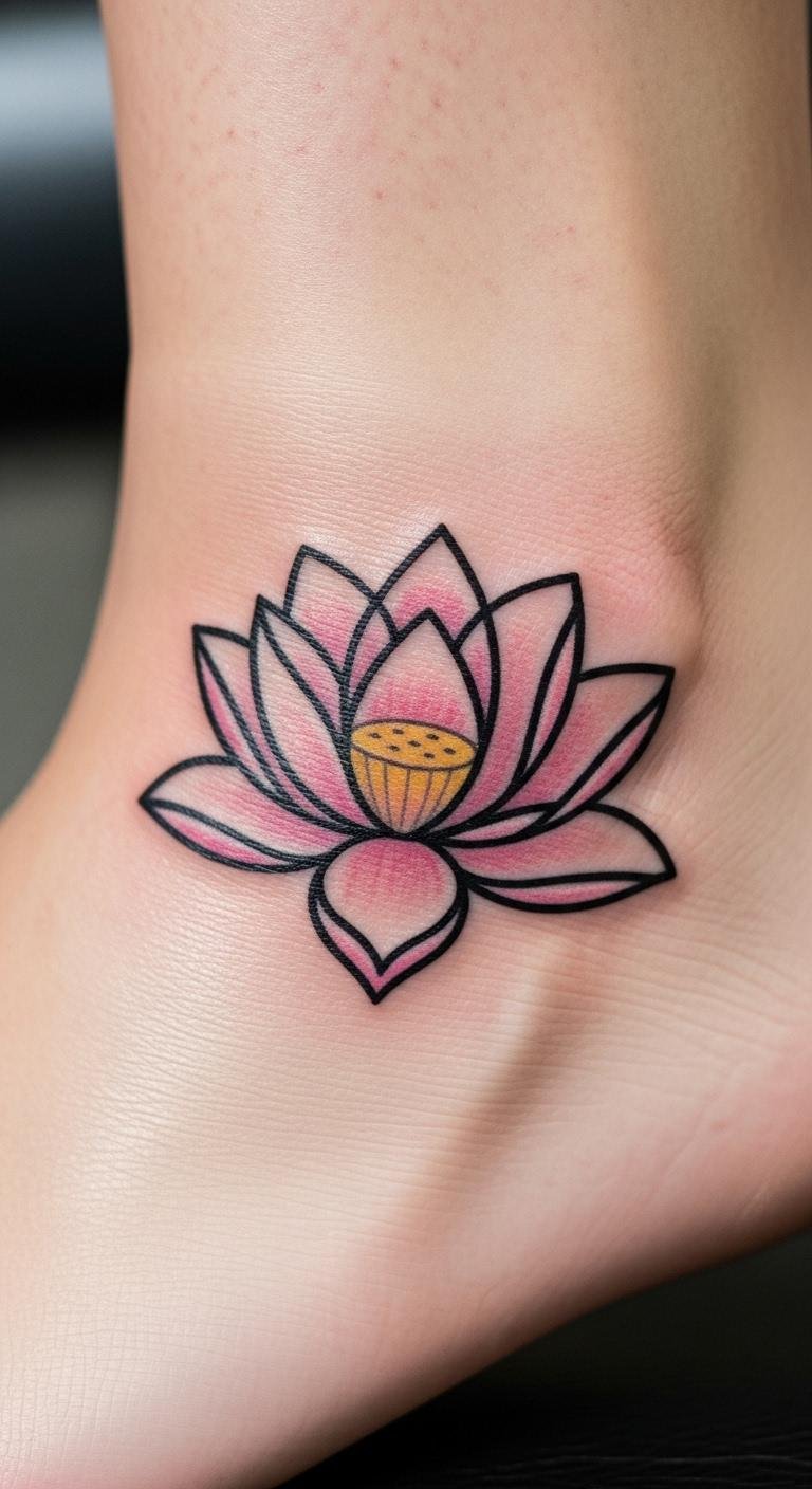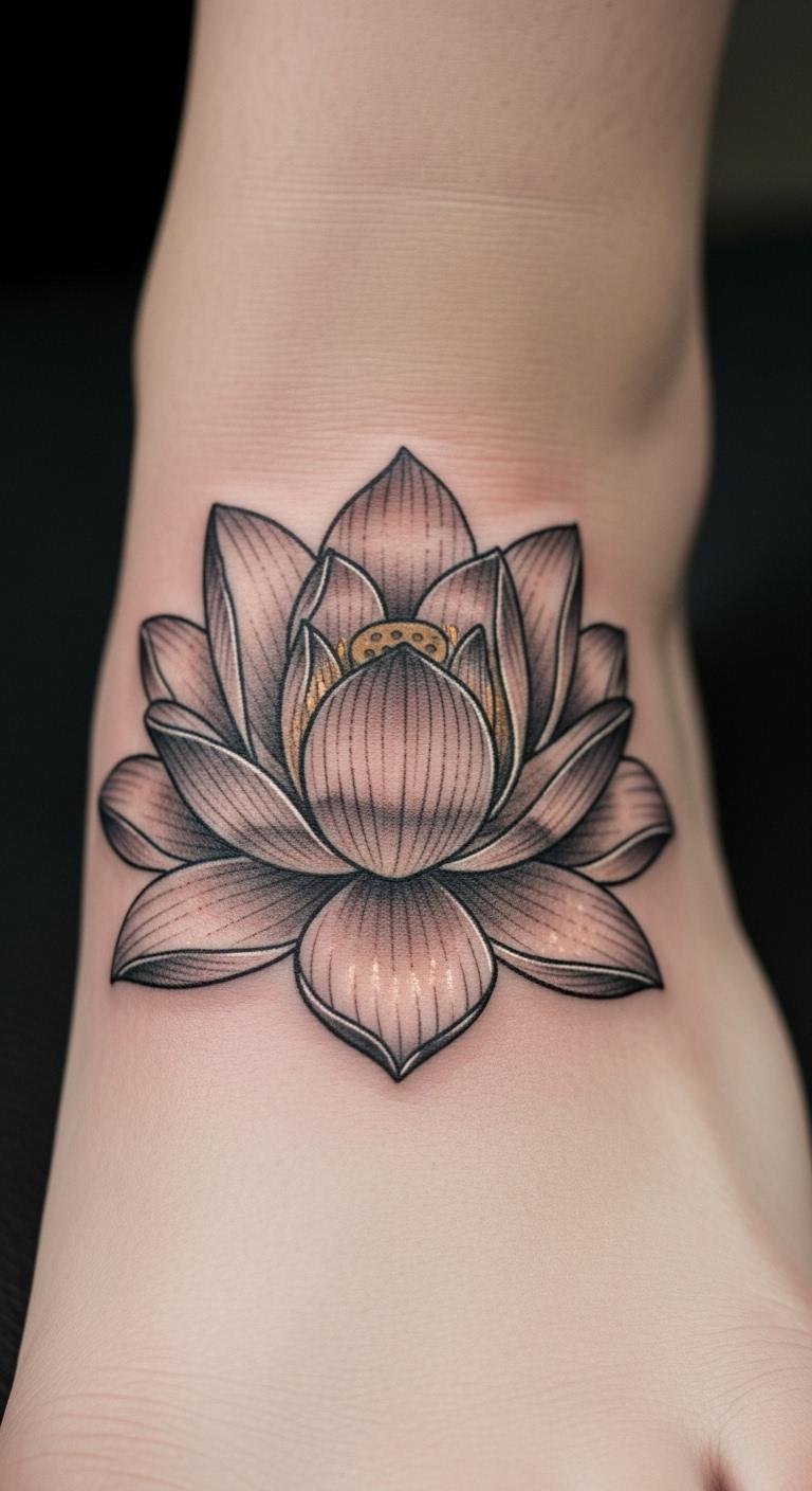 Foot lotus tattoos ground your spirit. They remind with every step. Draw on soles with markers. Keep it tiny. Bold the ground: inner peace below. Use free ideas. This placement roots you affordably.