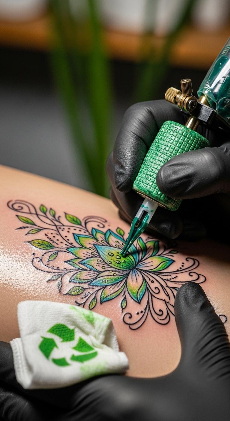Eco-friendly lotus tattoos use green methods. Choose organic inks. Research artists online. Bold the tips: sustainable growth. Practice green sketches. This keeps earth in mind affordably.