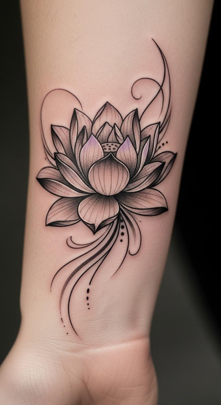 Wrist lotus tattoos symbolize openness and awareness. They remind you daily of growth. Keep the design small for quick sessions. Sketch it on your arm first to check fit. Choose black ink for economy. Bold the reminder: inner peace with every glance. Use free stencils online to plan. This spot makes the tattoo a constant, affordable motivator.
