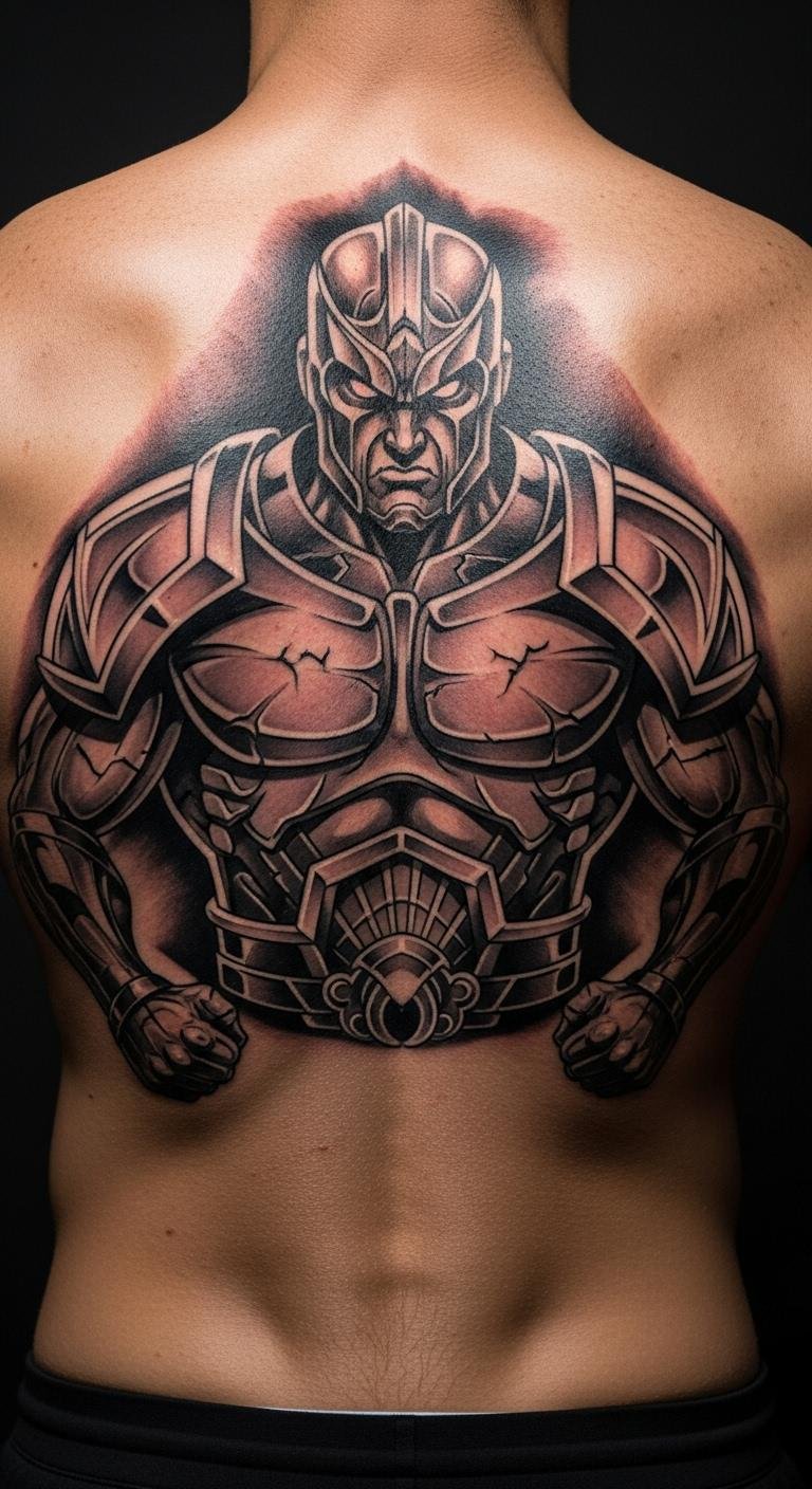 A guardian figure tattoo brings a sense of security to your back. It stands as a personal shield in ink form.