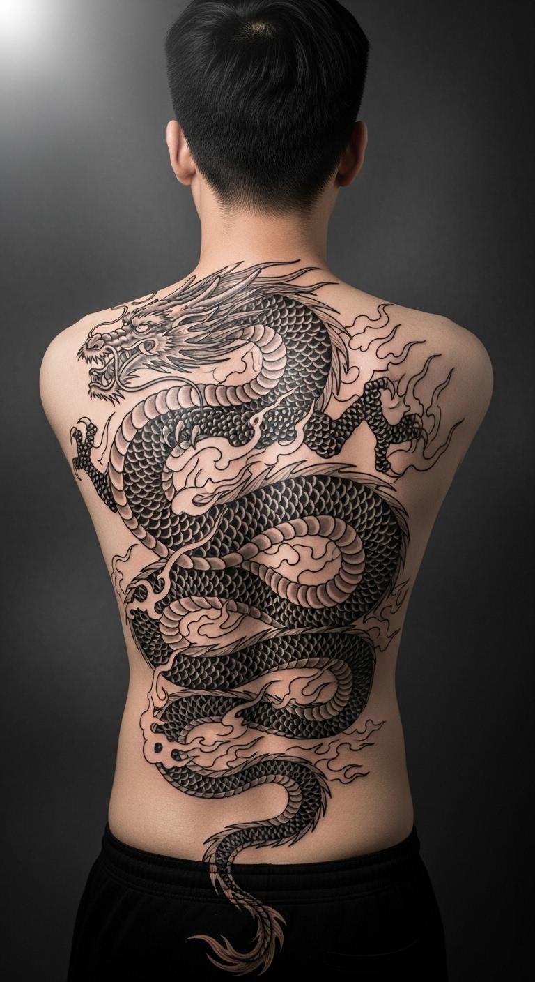 A dragon tattoo on your back symbolizes power and adventure in a striking way. It turns your back into an epic scene.