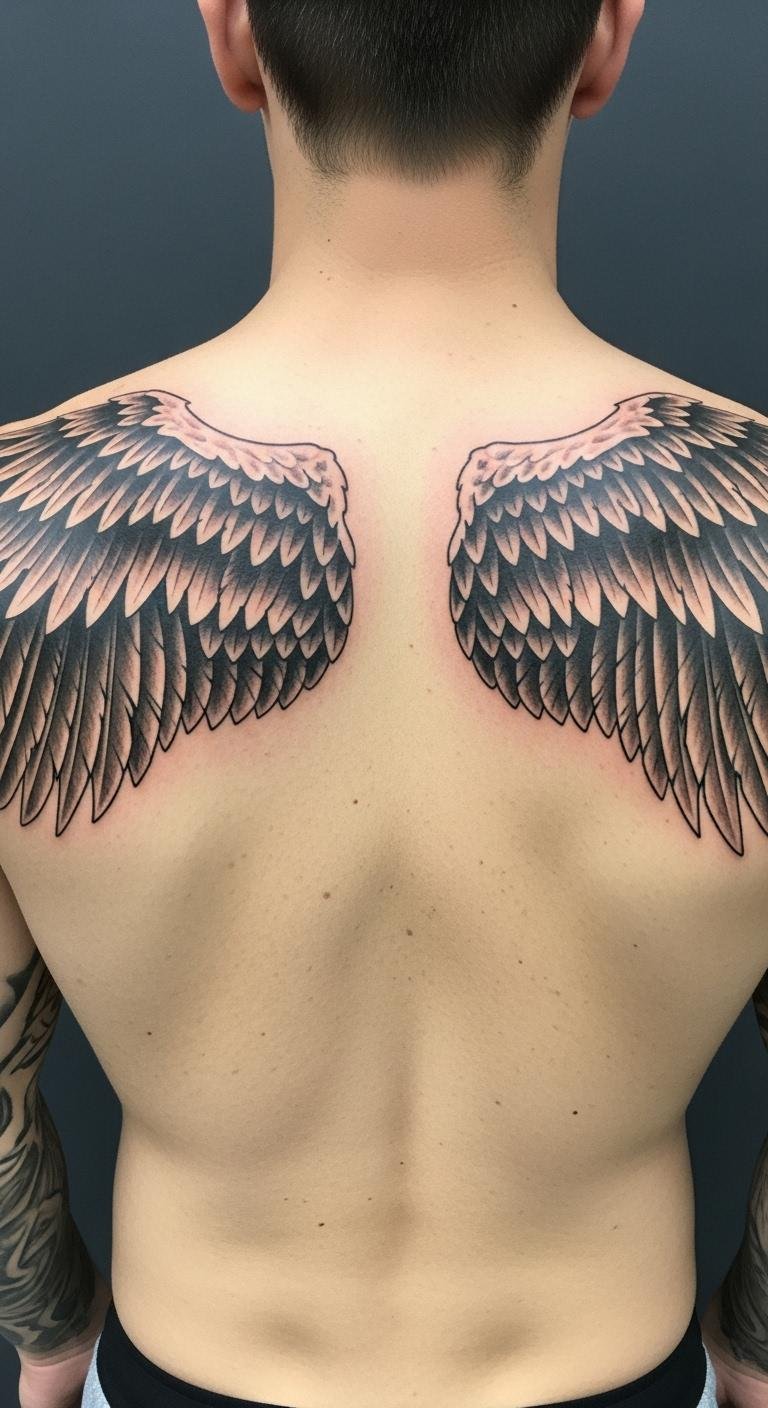 Think about angel wings as a classic choice for a bold back tattoo. They represent protection and freedom in a simple way. Start with a sketch on paper to visualize it.