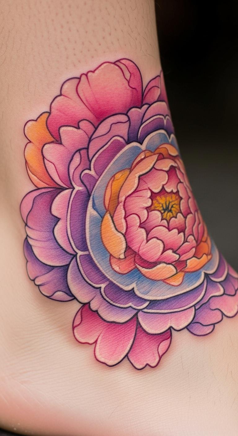 A watercolor peony mandala features soft blends and peonies for an artistic feel. Think of it as a gentle way to add color to your body. Draw peony shapes with watercolors on paper to plan. Get washable versions for under $10. Place it on your ankle for dainty style. Choose blended hues for softness. Add faint outlines for depth. This design allows for creative sessions and easy healing. Try home painting with basic supplies. Find artists who do watercolor at good rates. It brightens your daily wear.