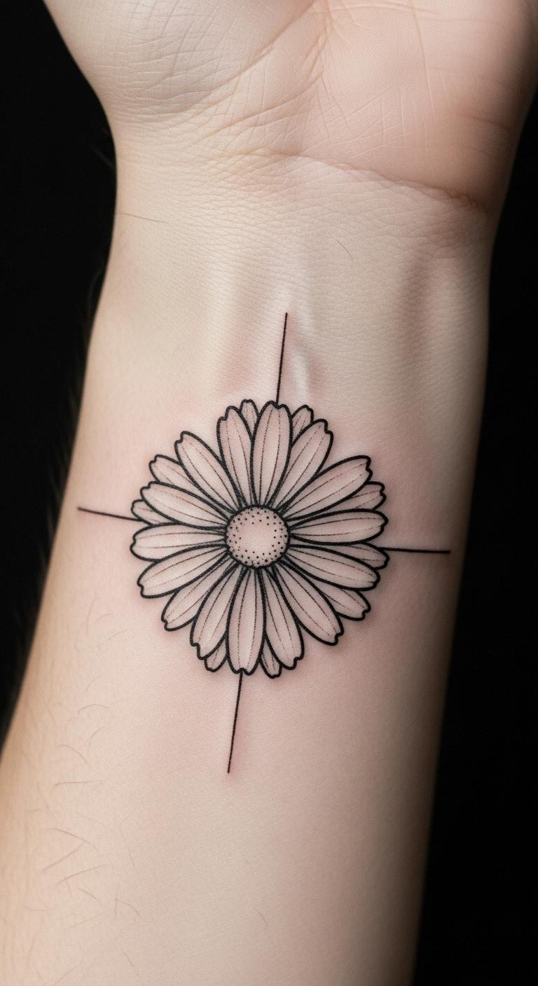 A minimalist daisy mandala offers clean lines and petals for everyday elegance. See it as a straightforward choice for subtle ink. Draw it freehand on your hand with a fine-tip pen to experiment. Pick up washable tattoos for $2 at stores to preview. Place it on your wrist for quick visibility. Use one color like black for simplicity. Toss in a tiny center dot for extra flair. This option fits small budgets and short appointments. Try tracing apps on your tablet for home fun. Select local spots with good ratings for the work. It blends with your routine and feels approachable.