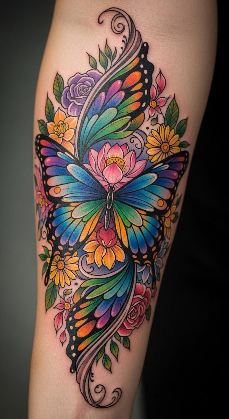 A butterfly floral mandala combines wings and blooms to symbolize flight and beauty. View it as a lighthearted option for your ink journey. Start with butterfly sketches mixed with flowers on plain paper. Grab temporary options at markets for cheap. Place it on your inner forearm for adjustable show. Use multiple colors for a playful vibe. Include small details like antennae for fun. This tattoo suits quick visits and simple aftercare. Try DIY with stickers from your drawer. Choose artists known for color work at affordable rates. It adds joy to your everyday look.
