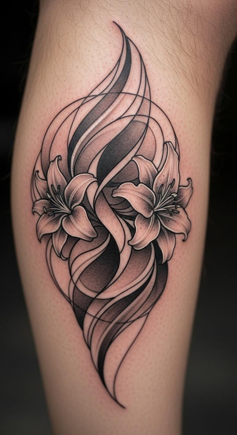 An abstract lily mandala uses loose shapes and lilies for a modern twist. See it as a relaxed choice for artistic expression. Draw abstract lines with lilies on scrap paper to begin. Pick up low-cost temporaries for testing. Put it on your calf for active wear. Stick to gray shades for an understated feel. Add wavy patterns for your own spin. This design fits short timelines and basic upkeep. Use phone apps for quick sketches. Look for local talent at reasonable prices. It complements your lifestyle with ease.