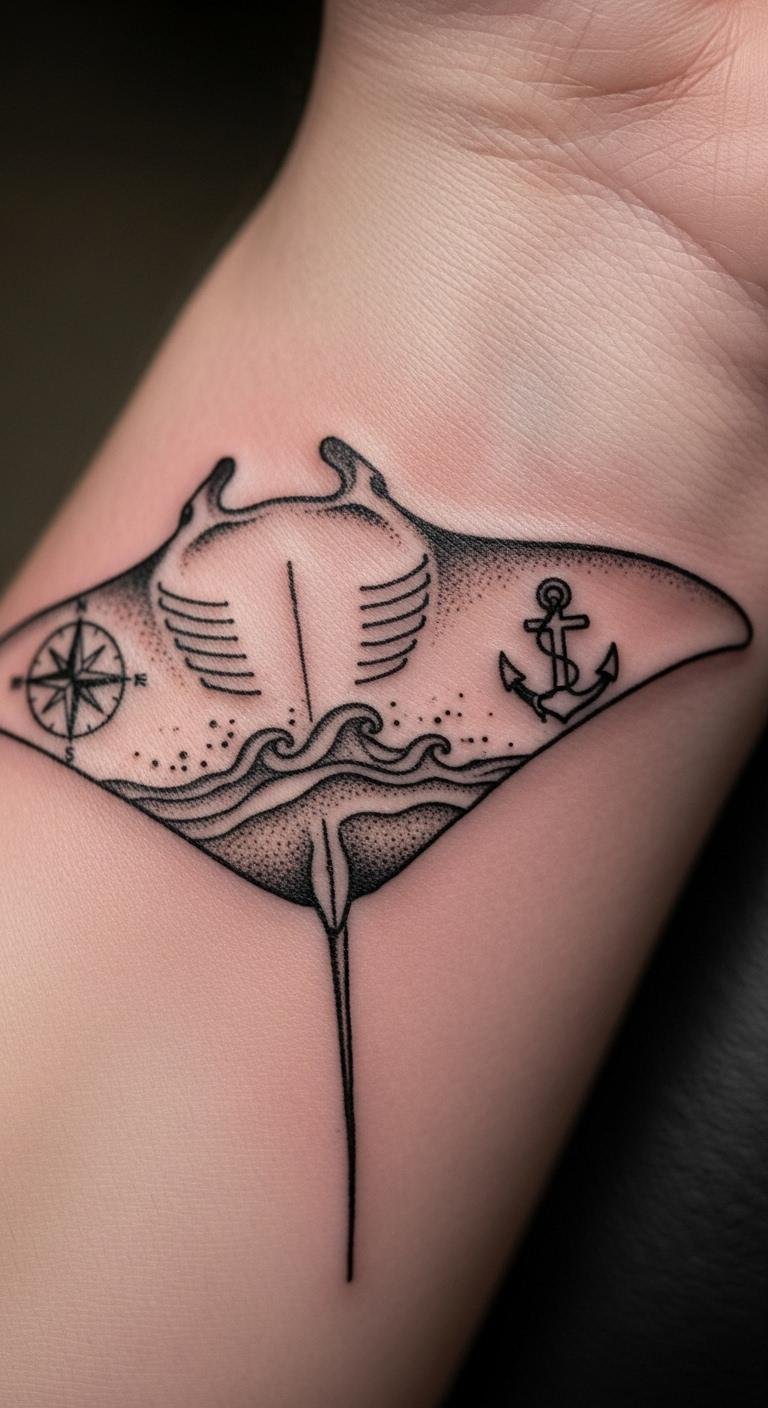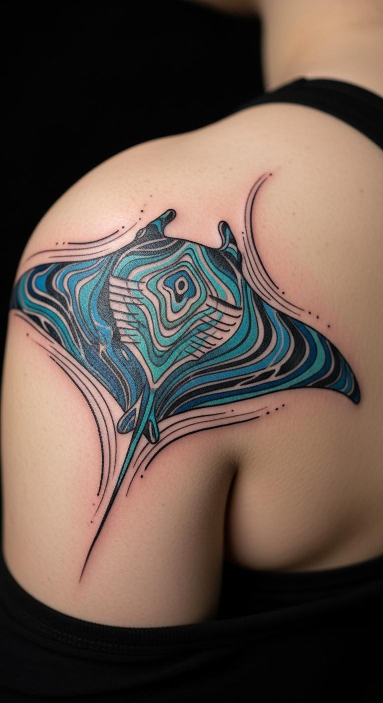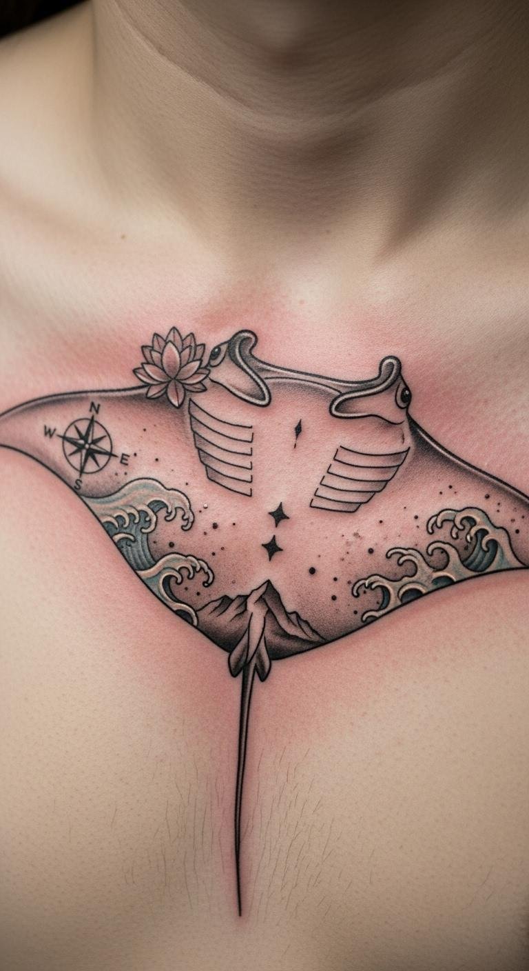 Pairing manta ray tattoos with waves adds flow. Draw waves simply. Use free wave patterns. Combine in sessions. This enhances the design affordably.