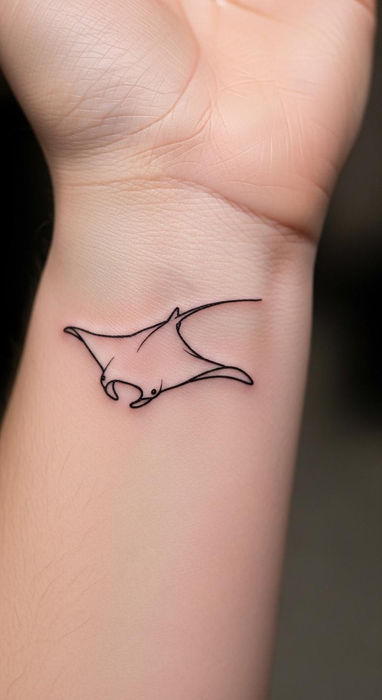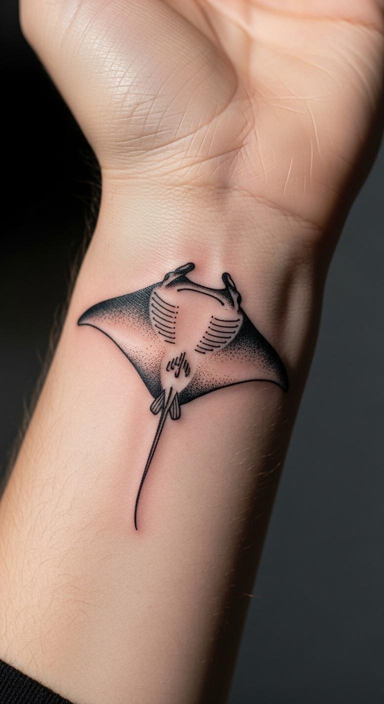 Wrist manta ray tattoos offer a subtle option for everyday wear. They use tiny shapes to convey grace. Practice with a fine-tip pen at home. Download free stencil ideas from reliable sites. Choose artists who offer quick, affordable work. Add a small spot for personalization. This size fits tight budgets easily. Cover it with a band for work if needed. You’ll enjoy a discreet design that boosts your style.