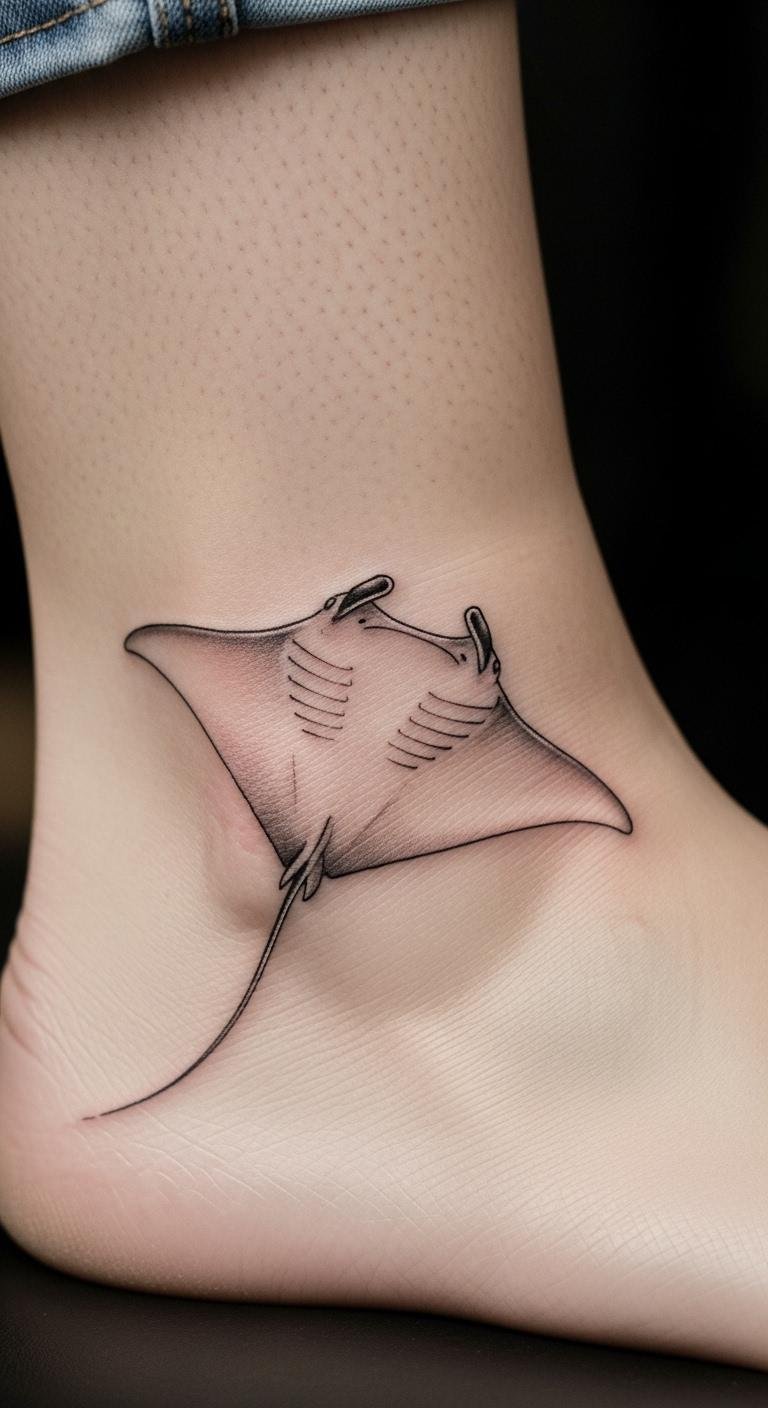 Ankle manta ray tattoos provide a hidden gem for quiet confidence. They feature light lines that flow gently. Draw mini versions with a pencil. Find free inspiration from art communities. Pick budget spots for small tattoos. Add a wave for a unique twist. This area stays out of sight when needed. Use stickers to test first. You’ll have an affordable way to express yourself.