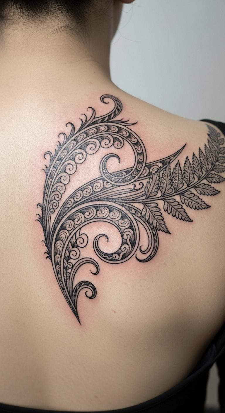 The koru spiral draws from the unfurling fern. It stands for new beginnings and growth. Think about how this design could mark your own fresh start.