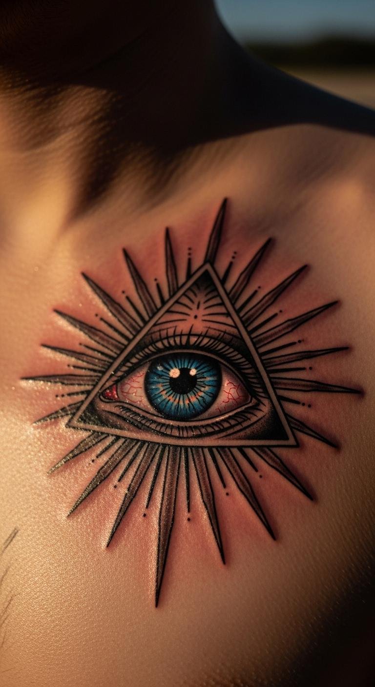 Think of an all-seeing eye on your back. It stands for watchfulness and protection. This symbol ties to spiritual awareness. Draw a basic version at home with markers. Find free apps for designs. Visit a budget shop for $50 sessions. Opt for simple lines to cut costs. Combine it with a small border. Put it on your shoulder for easy hiding. It’s a quick project. Test with temporary ink first. Wear it as a daily nudge. Talk about it with buddies. Make it your own twist.