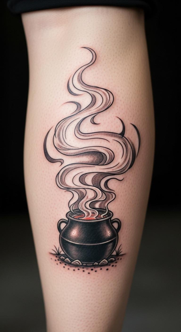 Consider a pot on your calf. It symbolizes purity. This design cleanses vibes. Draw smoke patterns. Access free art. Do it for $50. Use wavy lines. Include flames. Put it on your leg. It’s quick. Try with chalk. Let it purify thoughts. Share meanings. Adapt easily.