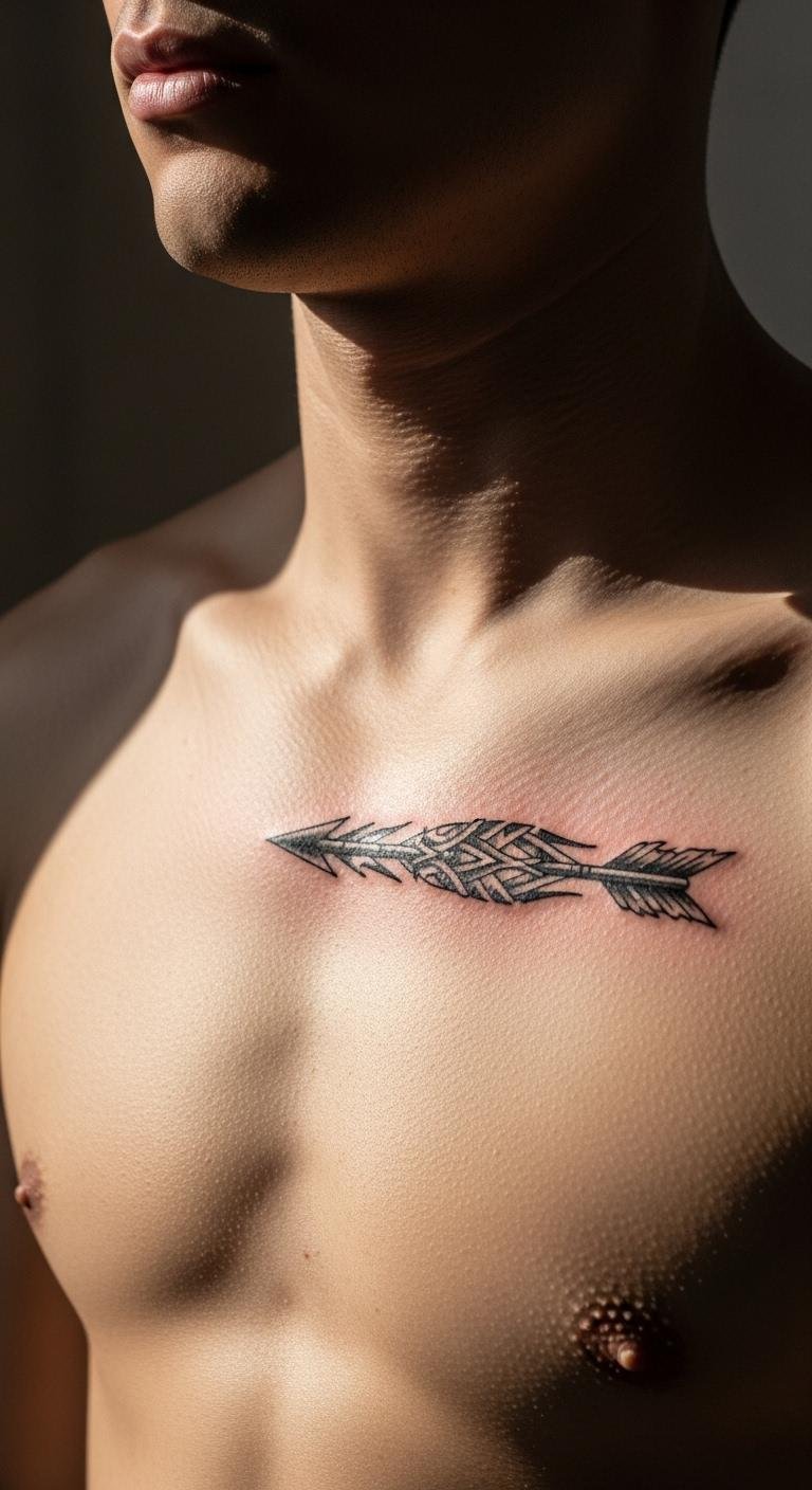 Arrows in tribal style point to direction in life, fitting neatly on your chest. Opt for a small version with straight lines for quick work. Put it along your sternum to follow your body’s flow. Look for affordable artists in your area and bring a hand-drawn sketch. Practice by drawing arrows on paper with a marker. This lets you experiment at no cost. Keep sessions short to manage any discomfort—think 30 minutes max. Follow up with basic care like moisturizing with lotion from your bathroom. It’s a simple way to keep the tattoo vibrant.