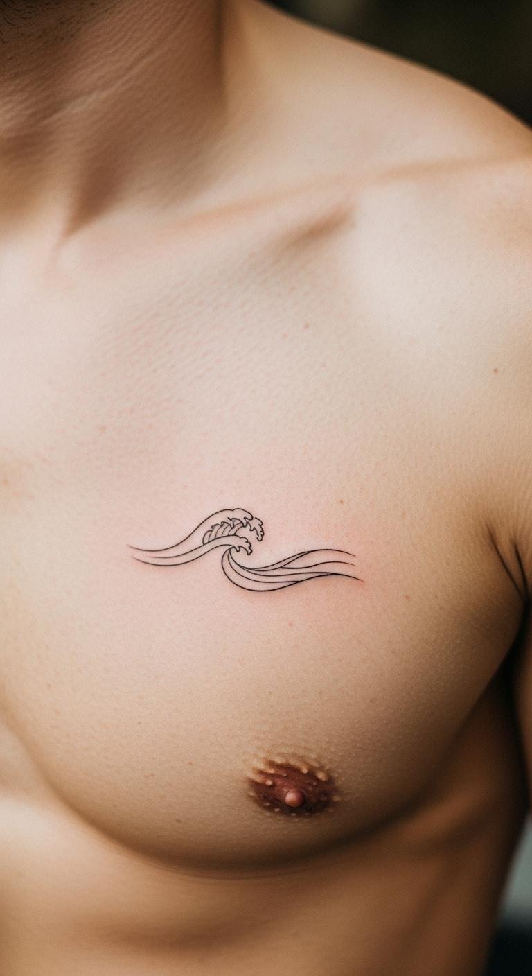Waves represent calm and adventure, making a great small chest choice. Stick to basic curves for a quick, cheap option. Put it near your heart for a personal touch. Draw waves freehand at home to plan ahead. This way, you avoid changes later. Use common supplies like paper and pen for your mock-up. After the tattoo, clean with mild soap from your shower. Simple steps ensure it heals well.